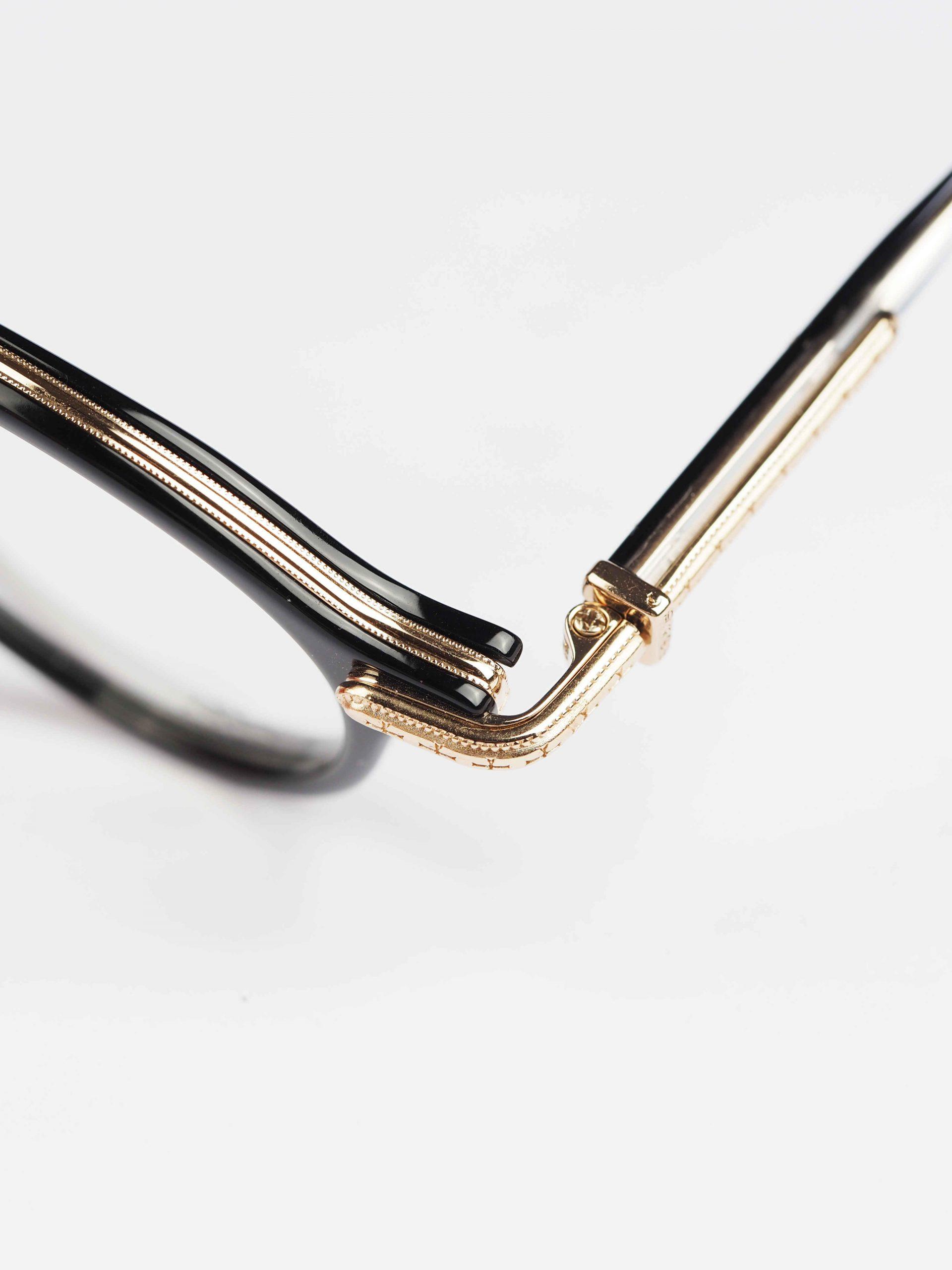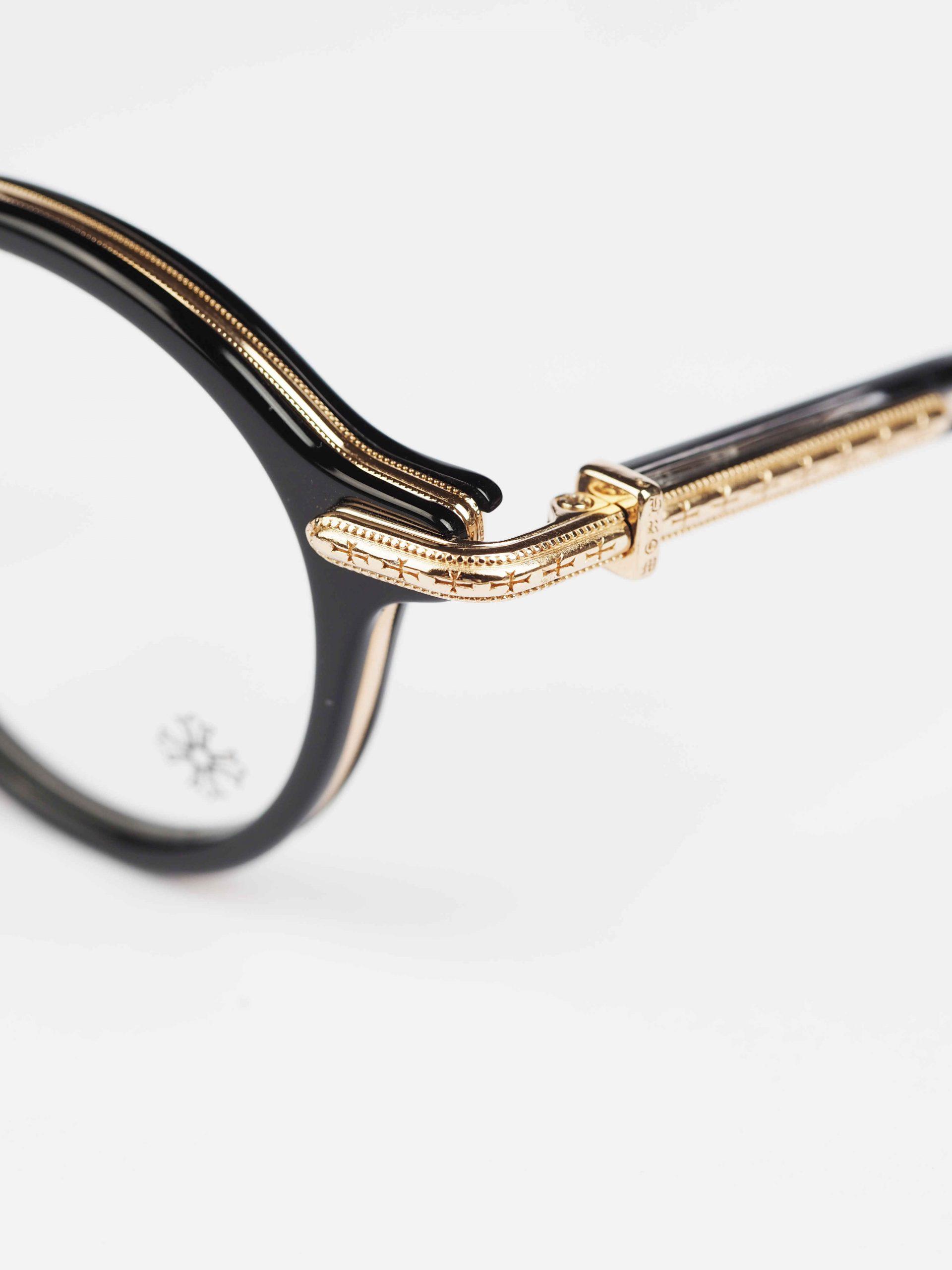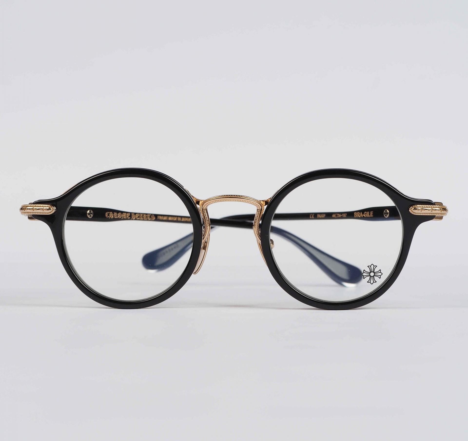 Chrome Hearts glasses BRA-GILE – BLACK/GOLD PLATED embody luxury and sophistication. The black frames with gold-plated accents offer a bold and opulent accessory for those with discerning taste.