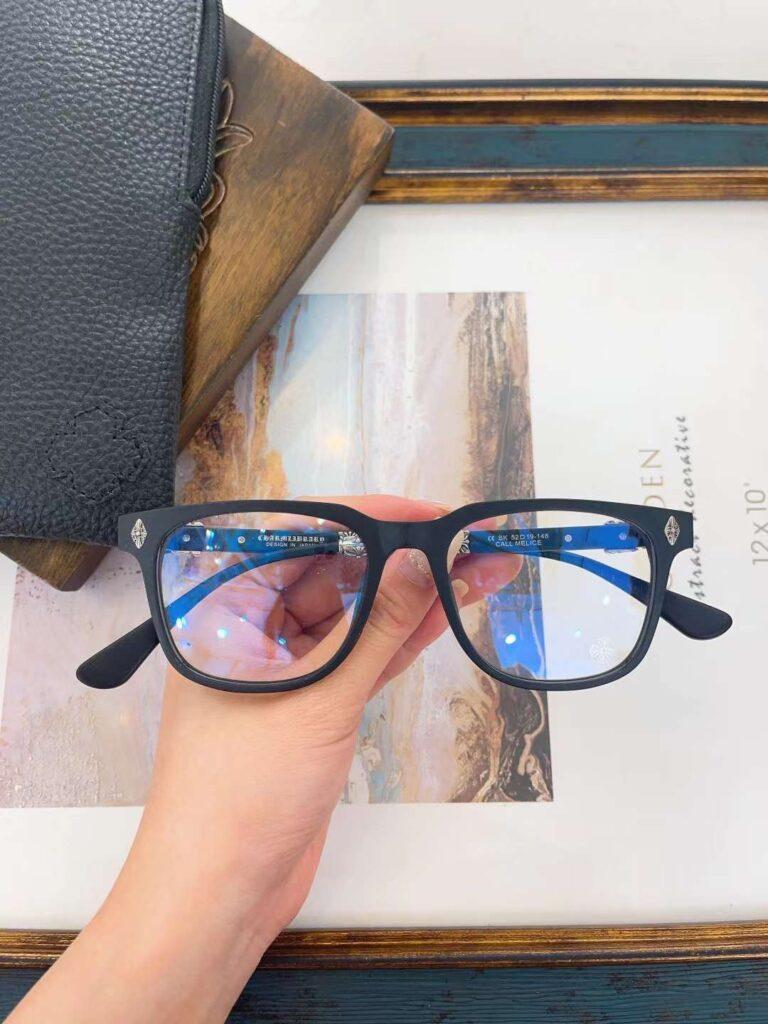 The Chrome Hearts glasses feature a Call Melice Black/Silver 925 frame, combining sleek design with sterling silver craftsmanship. These glasses offer durability and sophisticated style, perfect for everyday wear.
