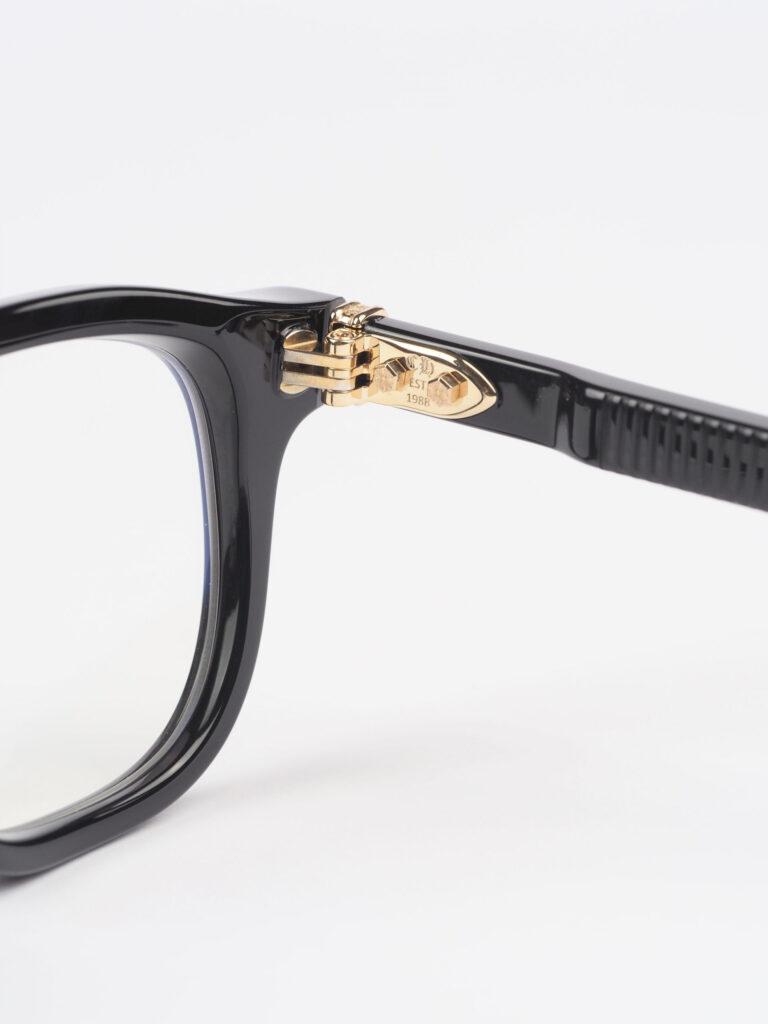 Introducing the Chrome Hearts Glasses CHIRP CHIRP – BLACK-GOLD PLATED, blending sophistication with boldness. With a sleek black frame adorned in gold plating, these glasses exude luxury and modern style. Elevate your look with this statement eyewear, perfect for those with discerning taste.