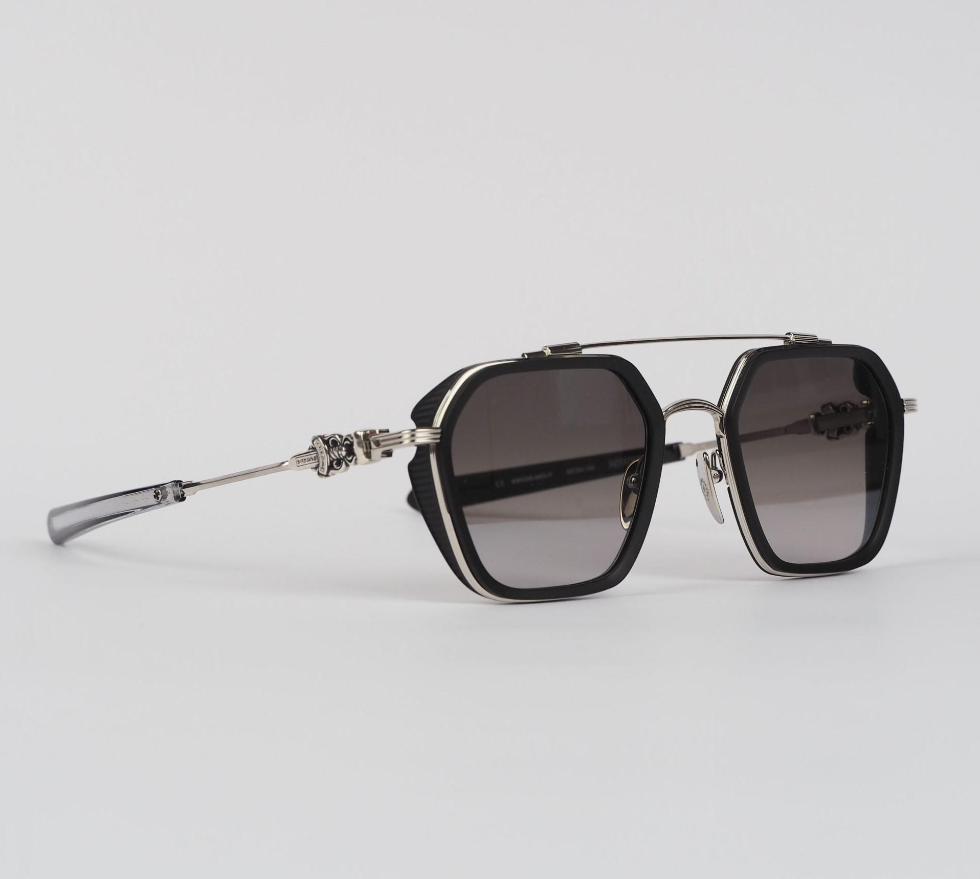Chrome Hearts Sunglasses HOTATION – MATTE BLACK/STAINLESS STEEL/SILVER offer a blend of style and durability. Featuring matte black frames, stainless steel detailing, and silver accents, they provide a sleek accessory for any outfit.