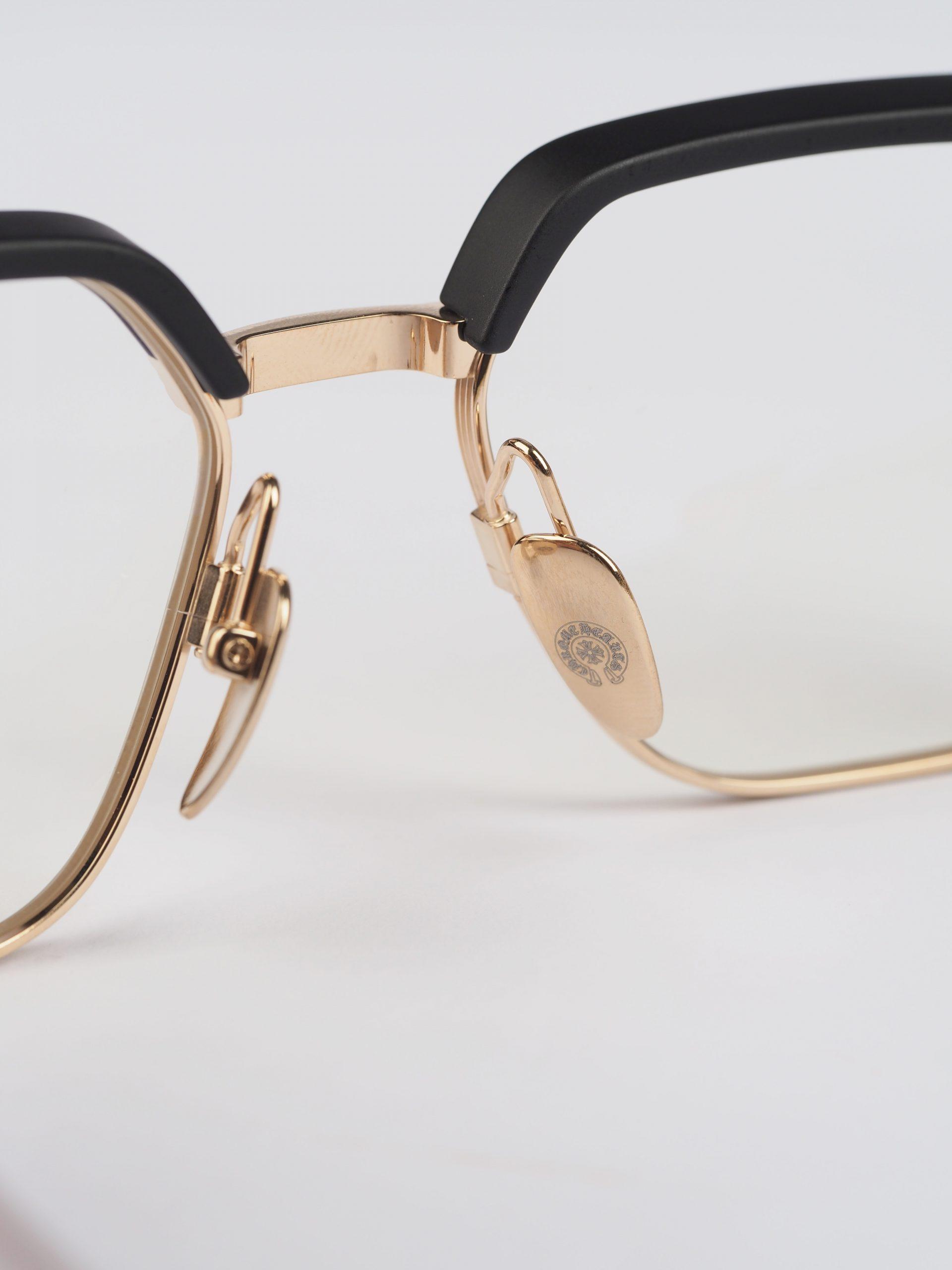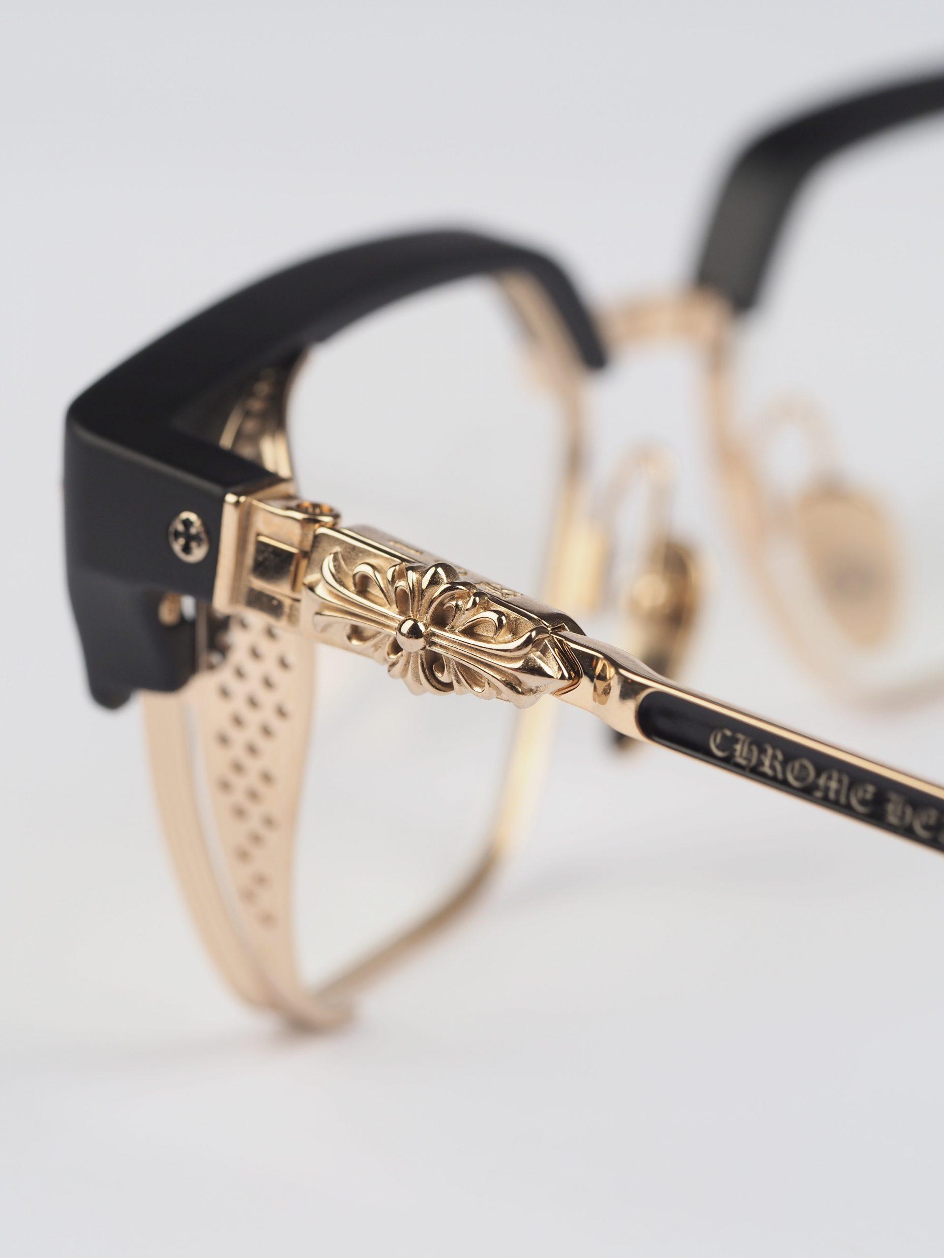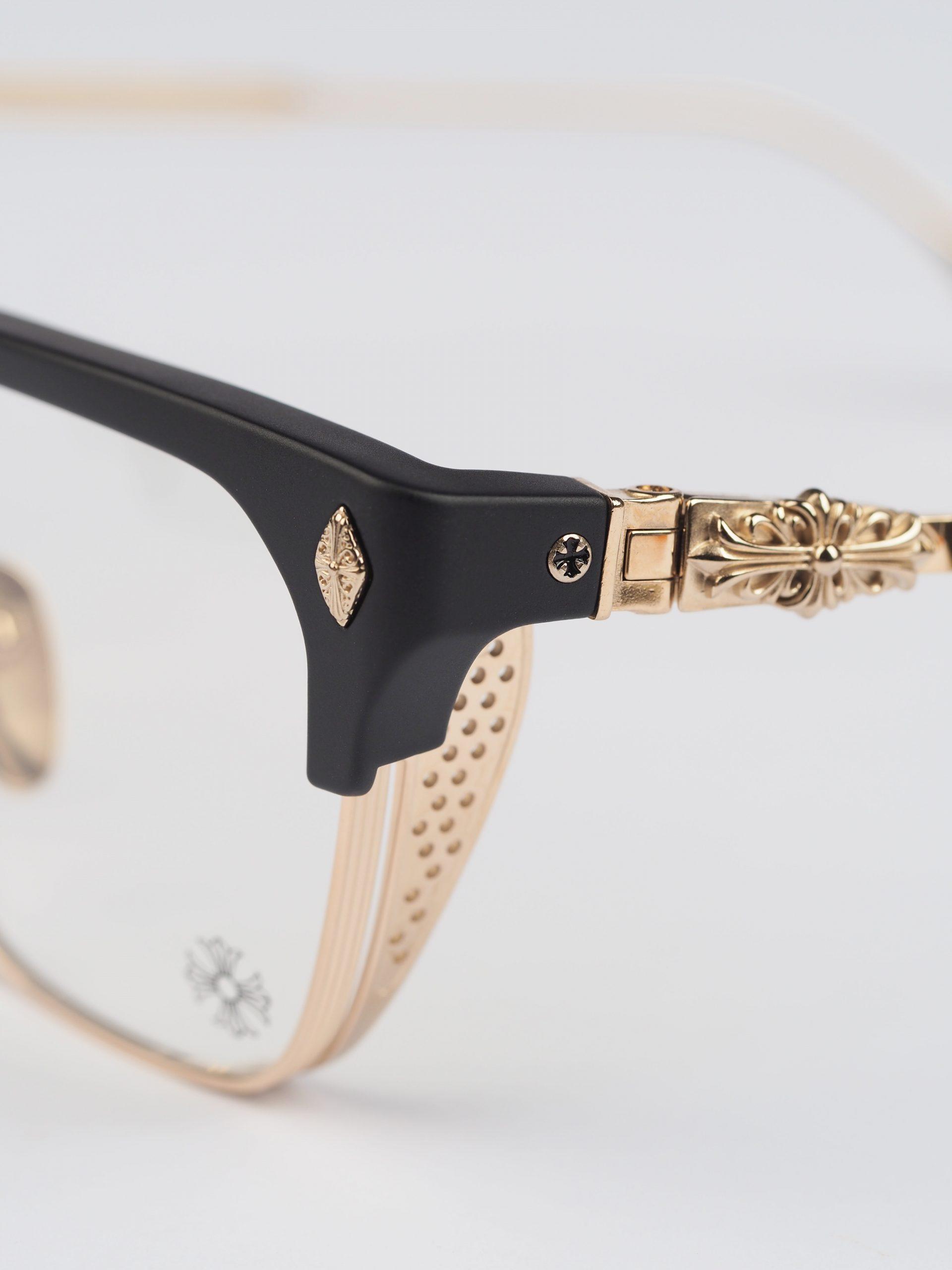 Chrome Hearts glasses LGMA – MATTE BLACK/GOLD PLATED epitomize luxury. With matte black frames and gold-plated accents, they offer a sophisticated accessory for discerning individuals.