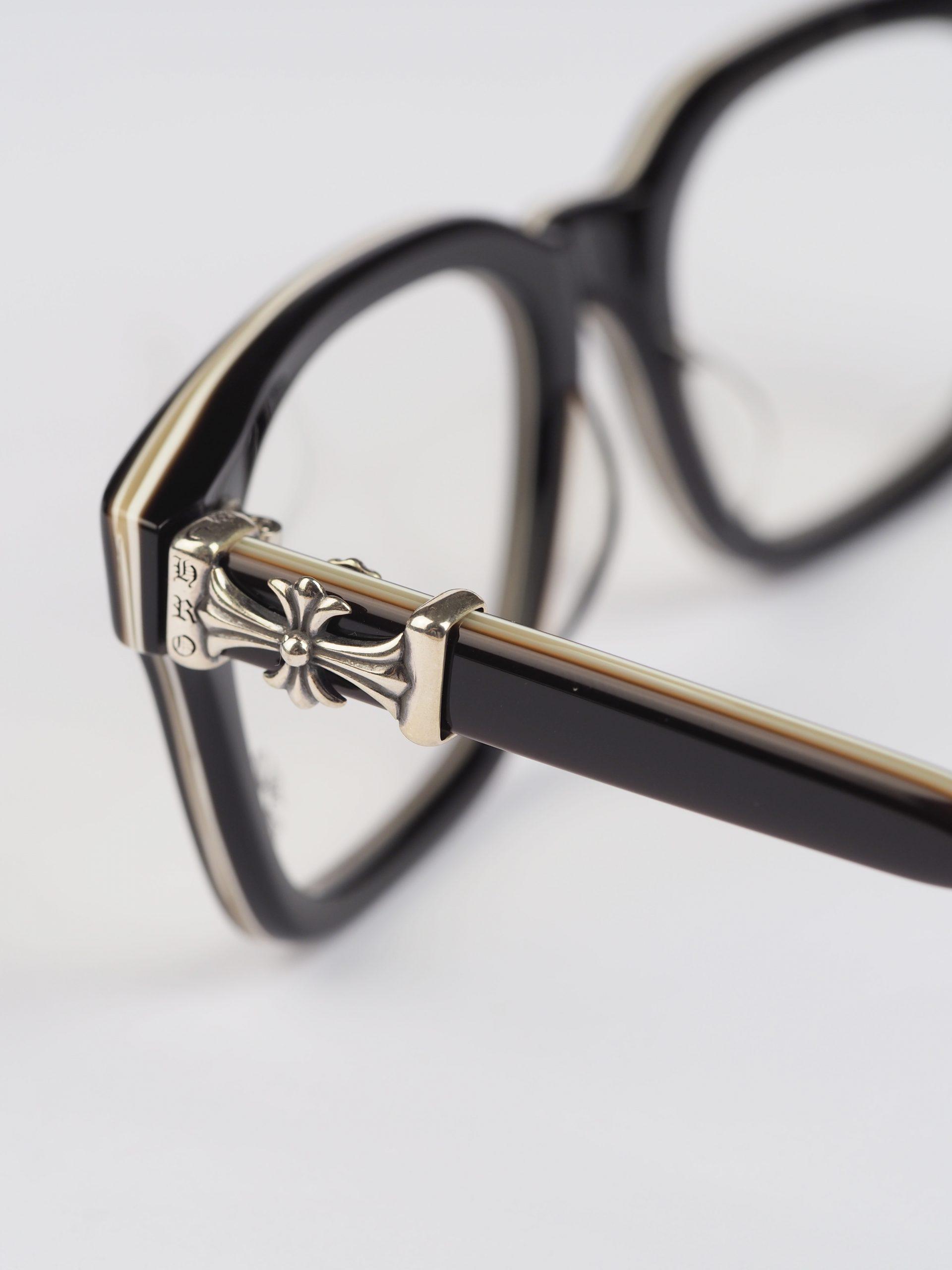 Chrome Hearts glasses COX UCKER – BLACK/SHINY SILVER exude contemporary elegance. The combination of black frames and shiny silver accents offers a sleek and stylish accessory for any occasion.