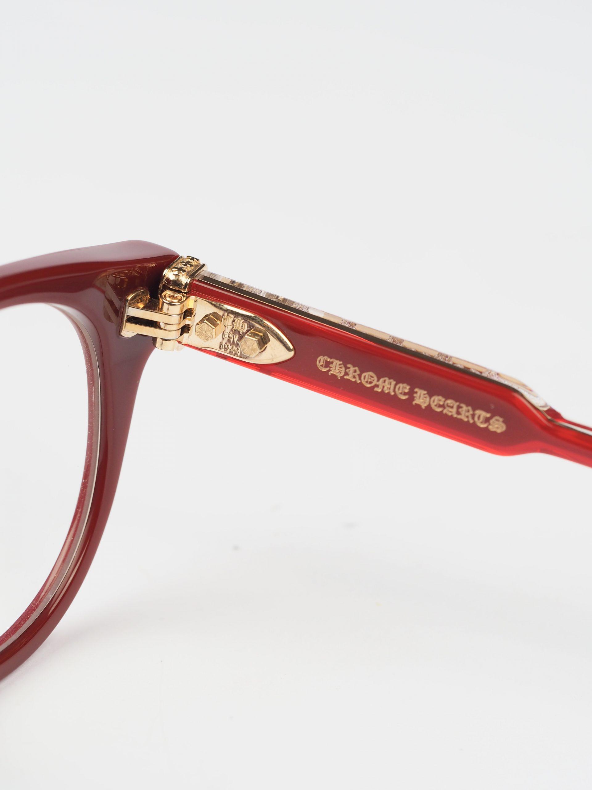 Chrome Hearts glasses DINGALONGLINGLONG – BORDELLO/GOLD PLATED epitomize extravagant style. The bold bordellos contrasted with gold-plated accents create a luxurious aesthetic, perfect for those who dare to make a statement with their eyewear.