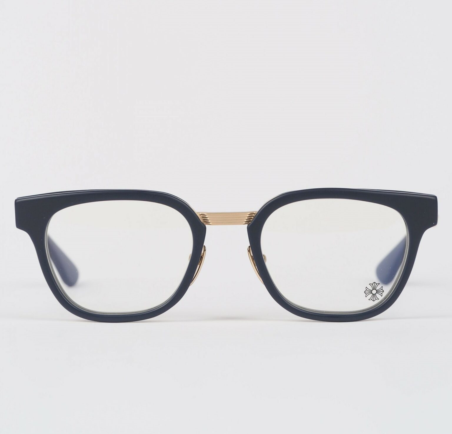 The Chrome Hearts glasses DUCK BUTTER in BLACKGOLD PLATED offer a fusion of sophistication and luxury. With their sleek black frames and lavish gold-plated accents, they exude timeless elegance and make a bold fashion statement.