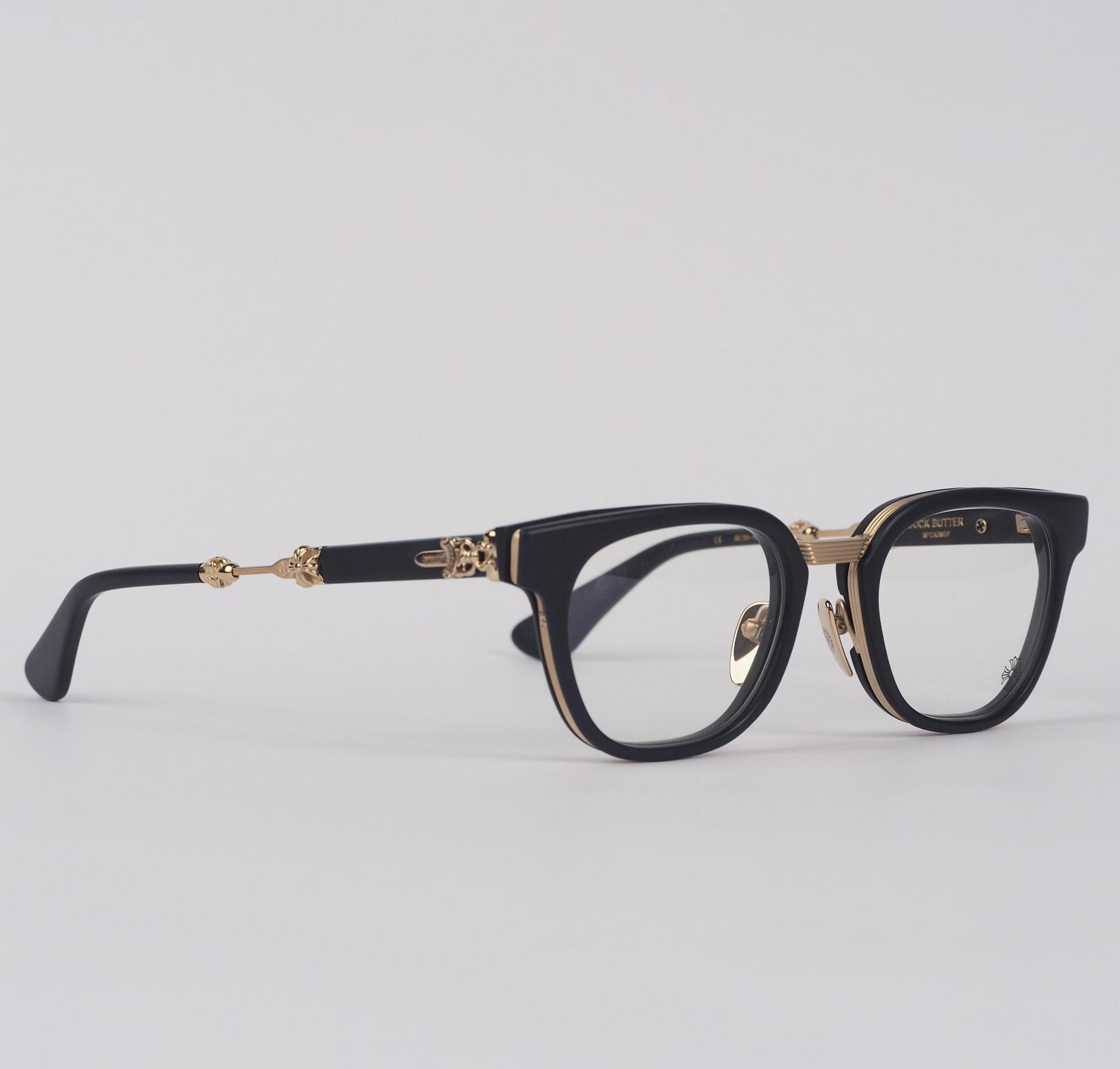 Chrome Hearts glasses DUCK BUTTER – MATTE PEACOCK/MATTE GOLD PLATED offer a bold statement. With matte peacock frames and matte gold-plated accents, they exude luxurious sophistication.
