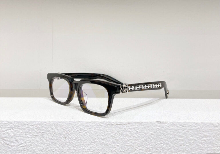 The Chrome Hearts Glasses FOTI H.T2 – DARK TORTOISE/SILVER exude timeless sophistication. With their rich dark tortoise frames accented by silver detailing, they offer a perfect blend of classic style and modern elegance, making a statement in any setting.