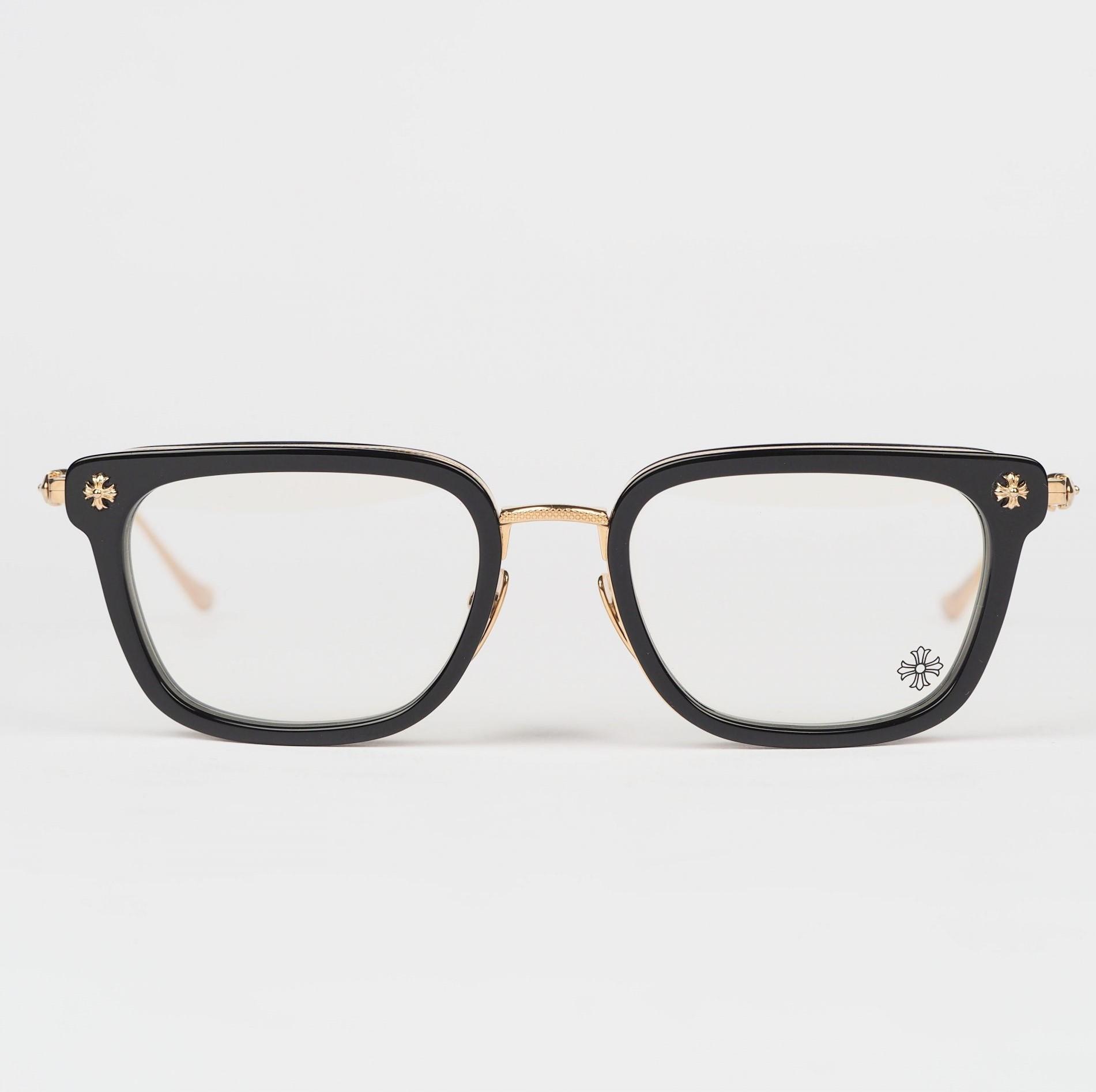 Chrome Hearts glasses GIZZNME – BLACK/GOLD PLATED embody sophistication. With black frames and gold-plated accents, they offer a luxurious accessory for those with refined taste.
