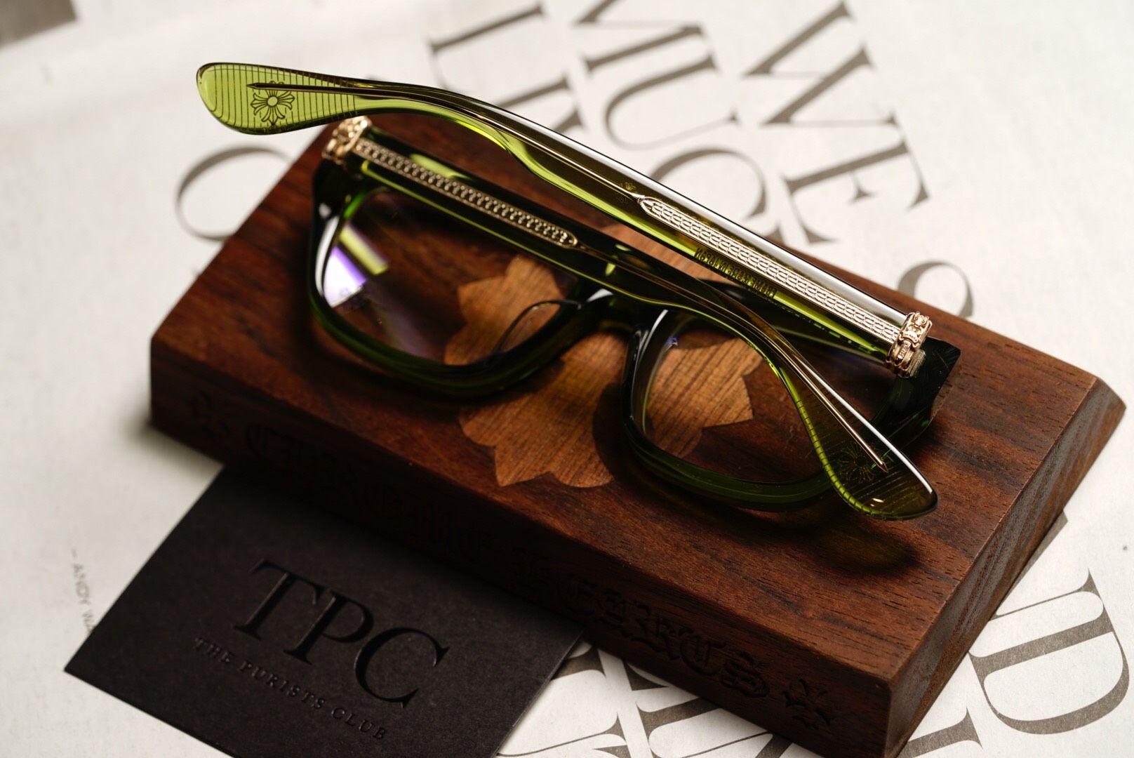 Chrome Hearts Glasses OPTICAL – DARK OLIVE/GOLD PLATED blend sophistication with style. Featuring dark olive frames and gold-plated accents, they offer a luxurious accessory for any ensemble.
