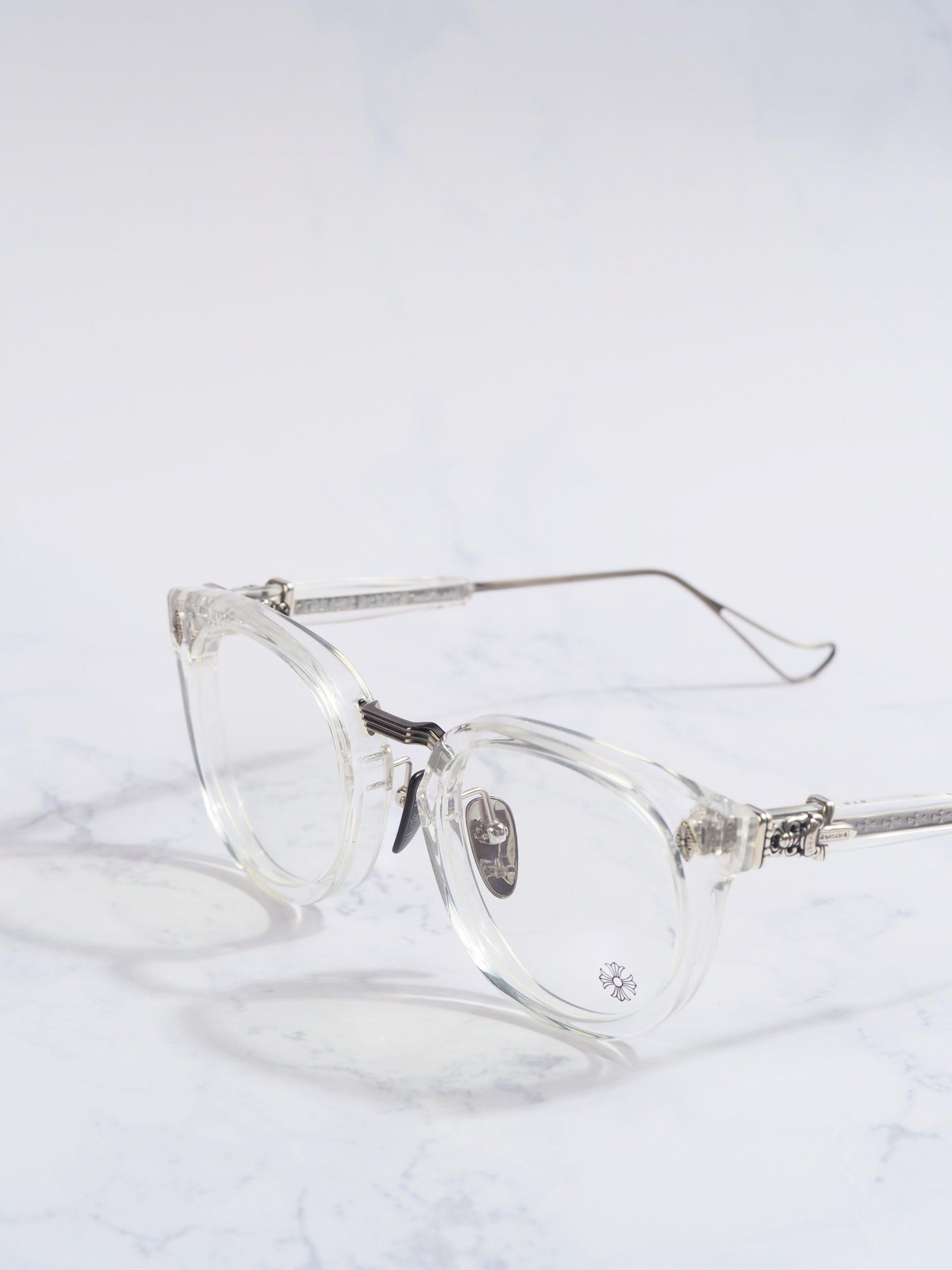 Chrome Hearts Glasses SAC – CRYSTAL/ANTIQUE SILVER evoke timeless elegance. With crystal frames and antique silver accents, they offer a refined accessory for the discerning wearer.