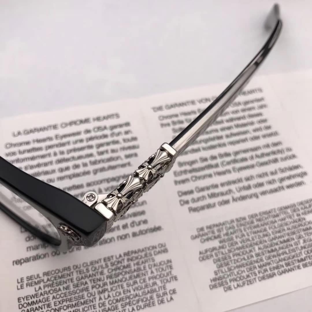 The Chrome Hearts Glasses SMTTHE-F-BLACK/SILVER epitomize contemporary elegance. Their sleek black frames with silver accents exude sophistication and modernity, making them a standout accessory for those who appreciate refined style and quality craftsmanship.