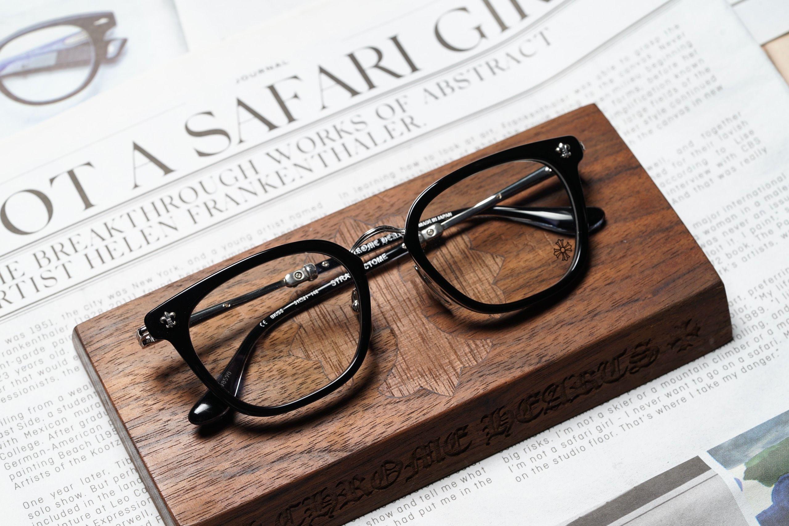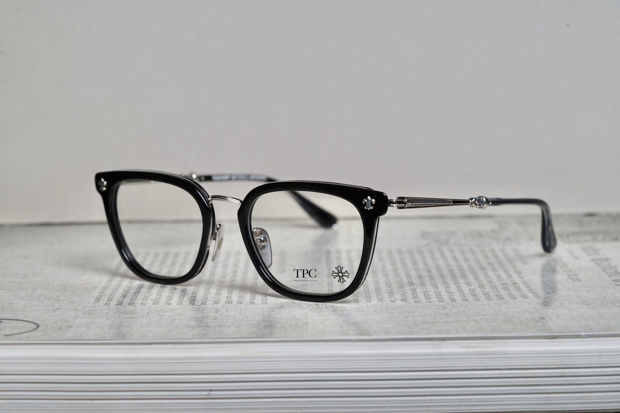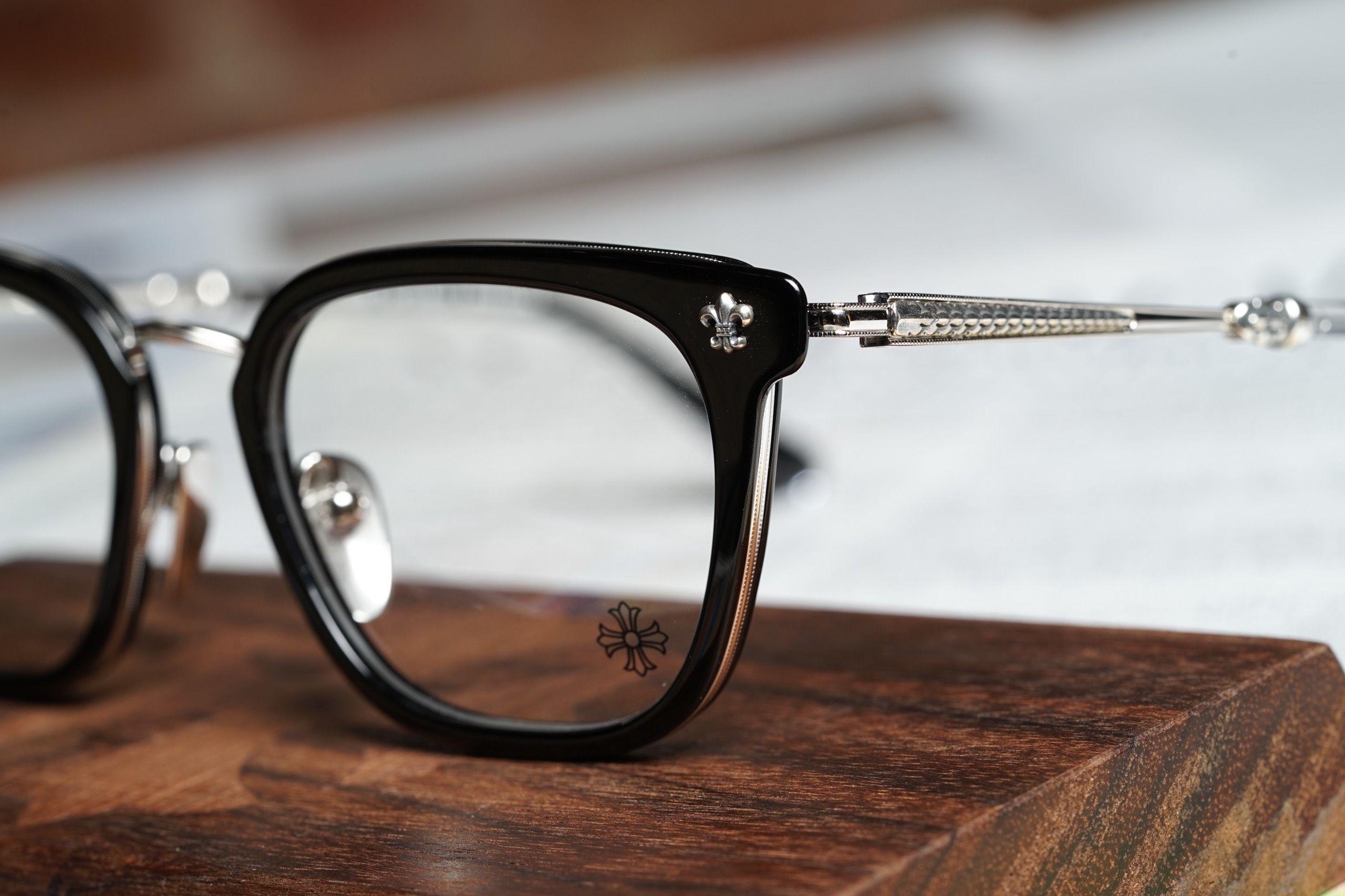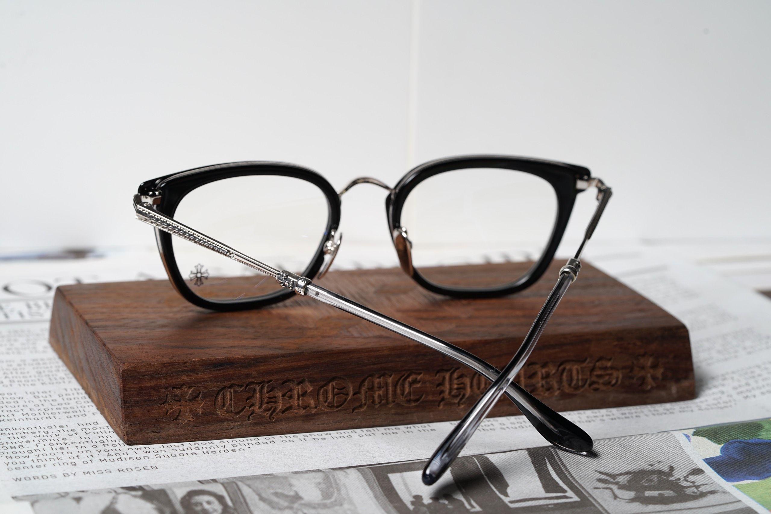The Chrome Hearts Glasses STRAPADICTOME in BLACK/SILVER exude timeless elegance with their sleek black frames and silver accents, making them a versatile and stylish accessory for any occasion.