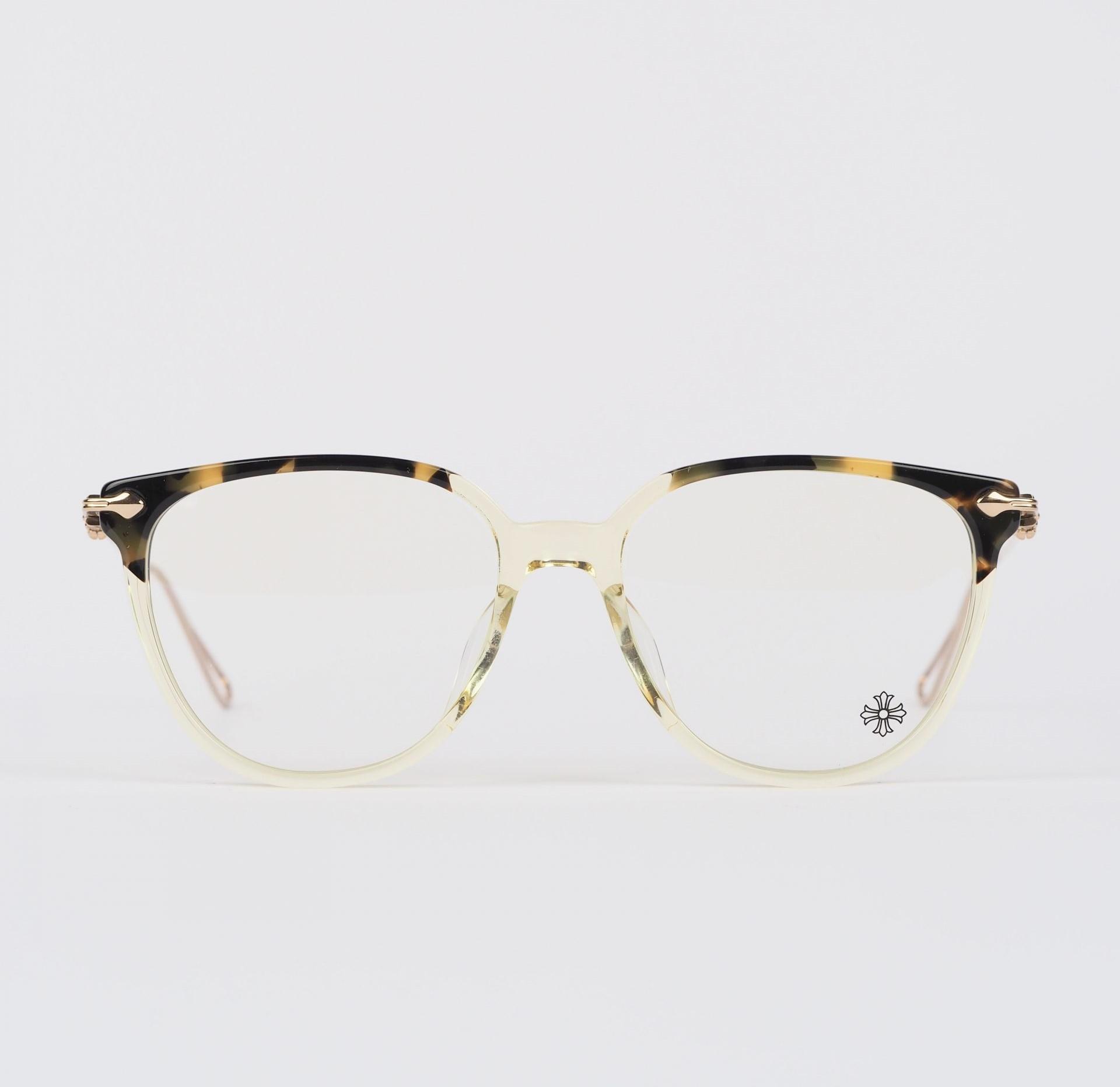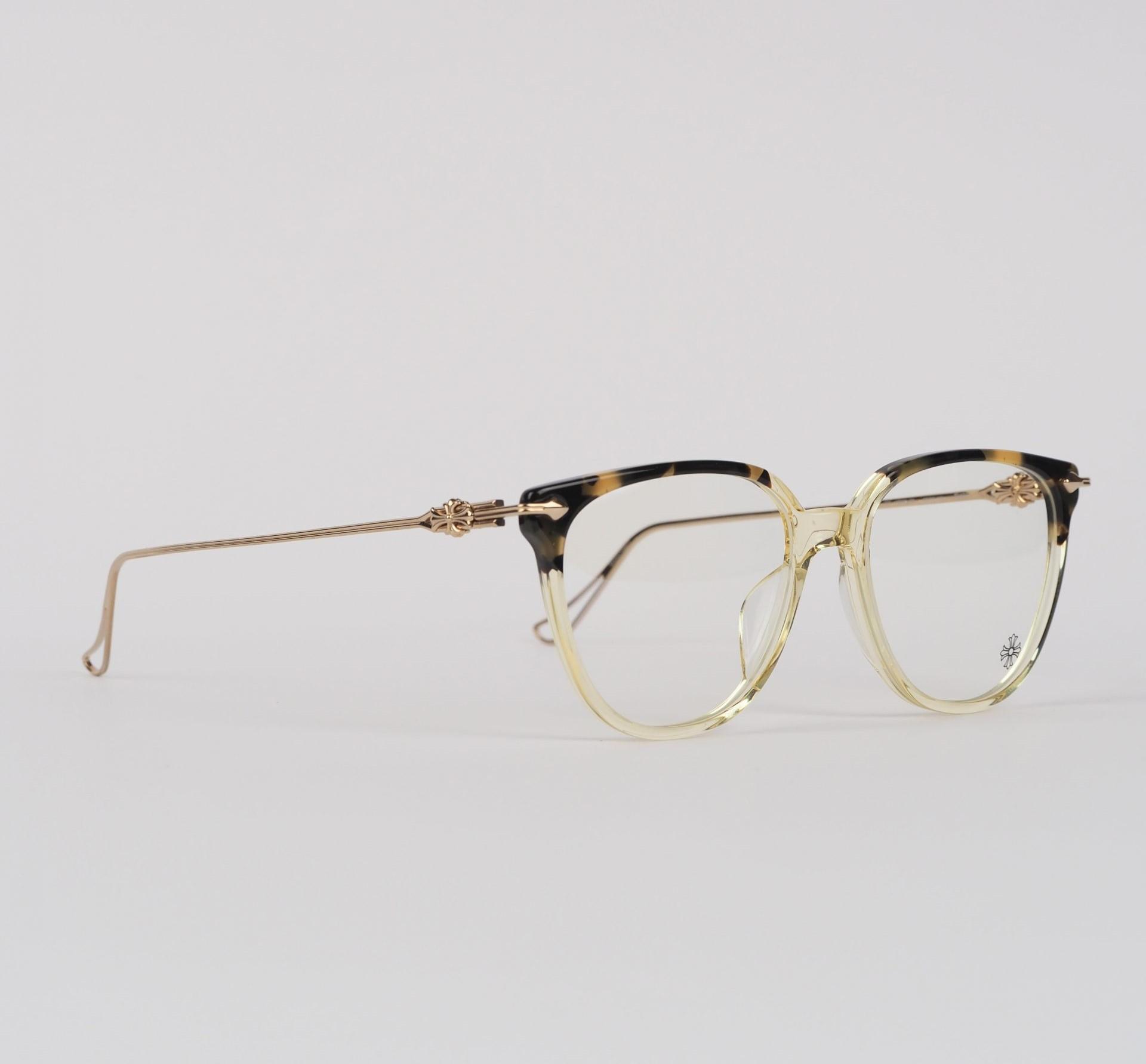 Chrome Hearts Glasses THOT – TORTOISE/GOLD PLATED blend classic style with luxury. Tortoise frames complemented by gold-plated accents make for a distinguished fashion statement.