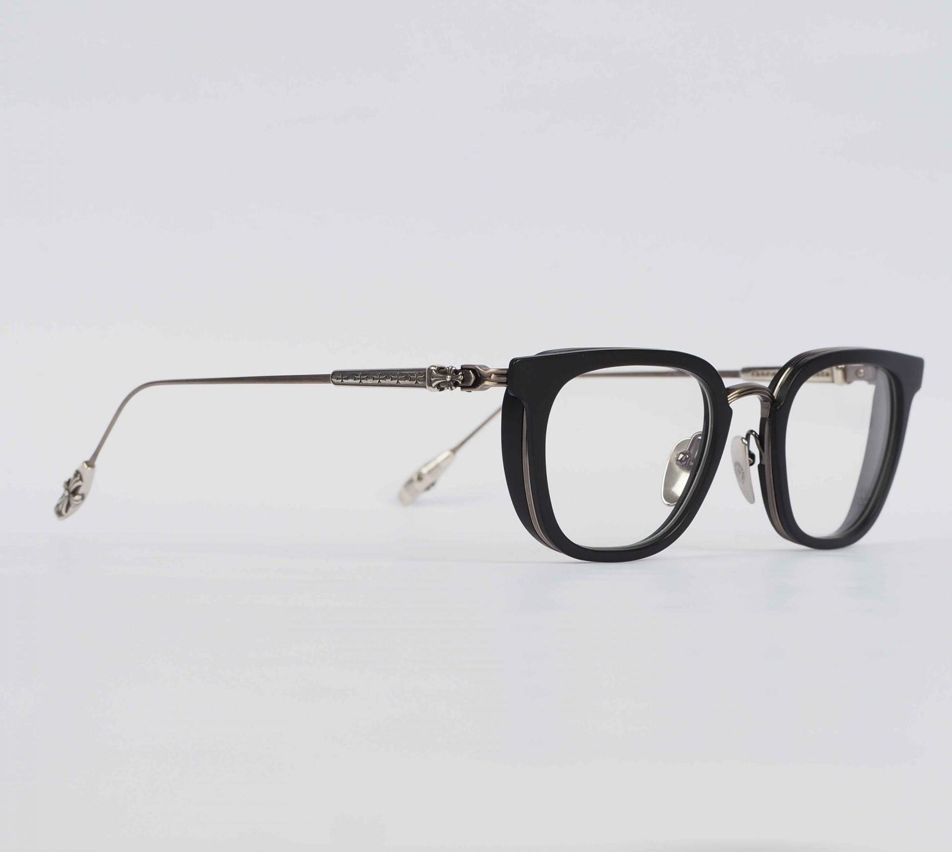Crafted with meticulous detail, the Chrome Hearts Glasses TELEVAGILIST – MATTE BLACK/ANTIQUE SILVER exudes understated refinement, pairing a matte black frame with vintage-inspired antique silver accents.