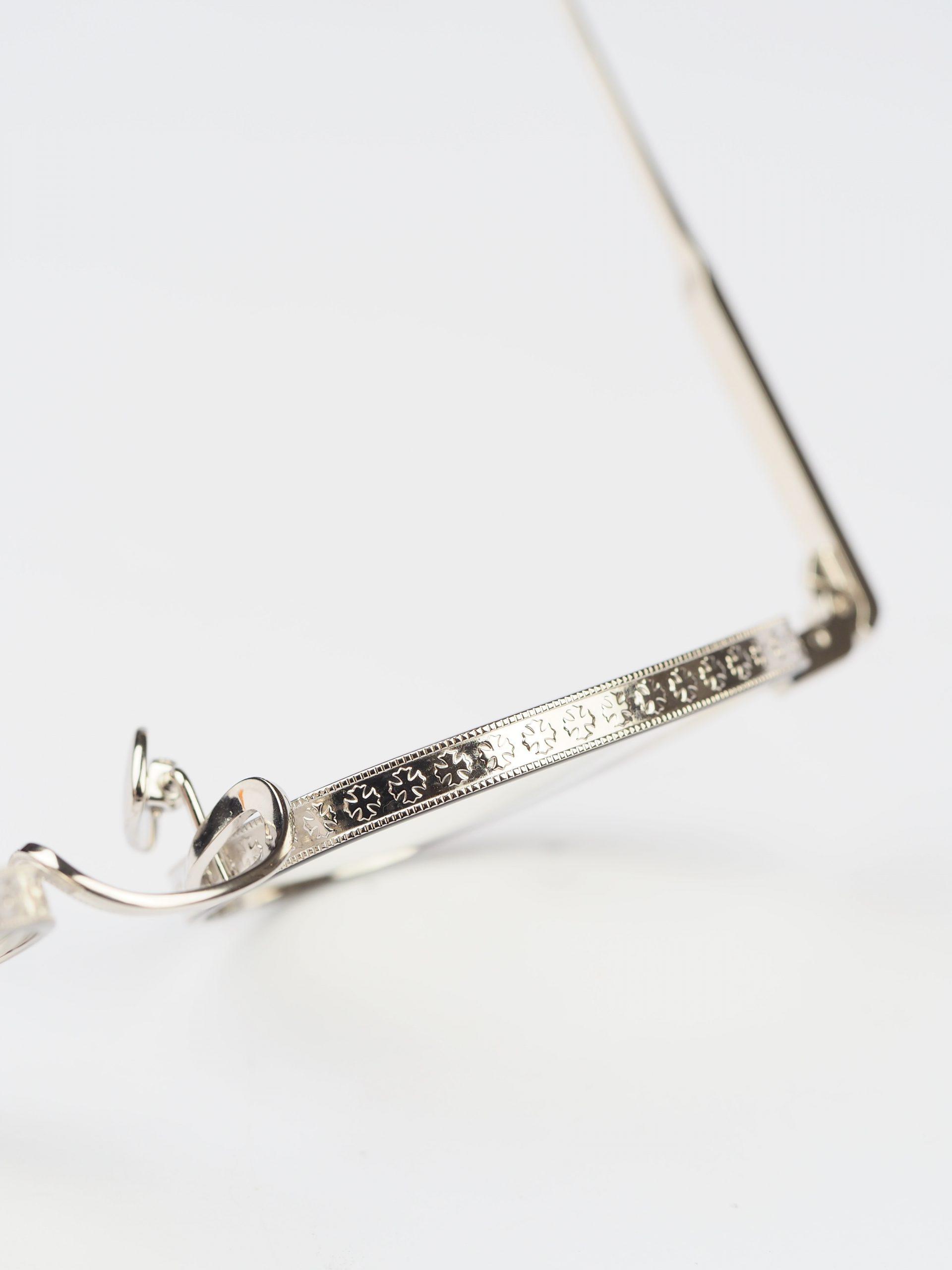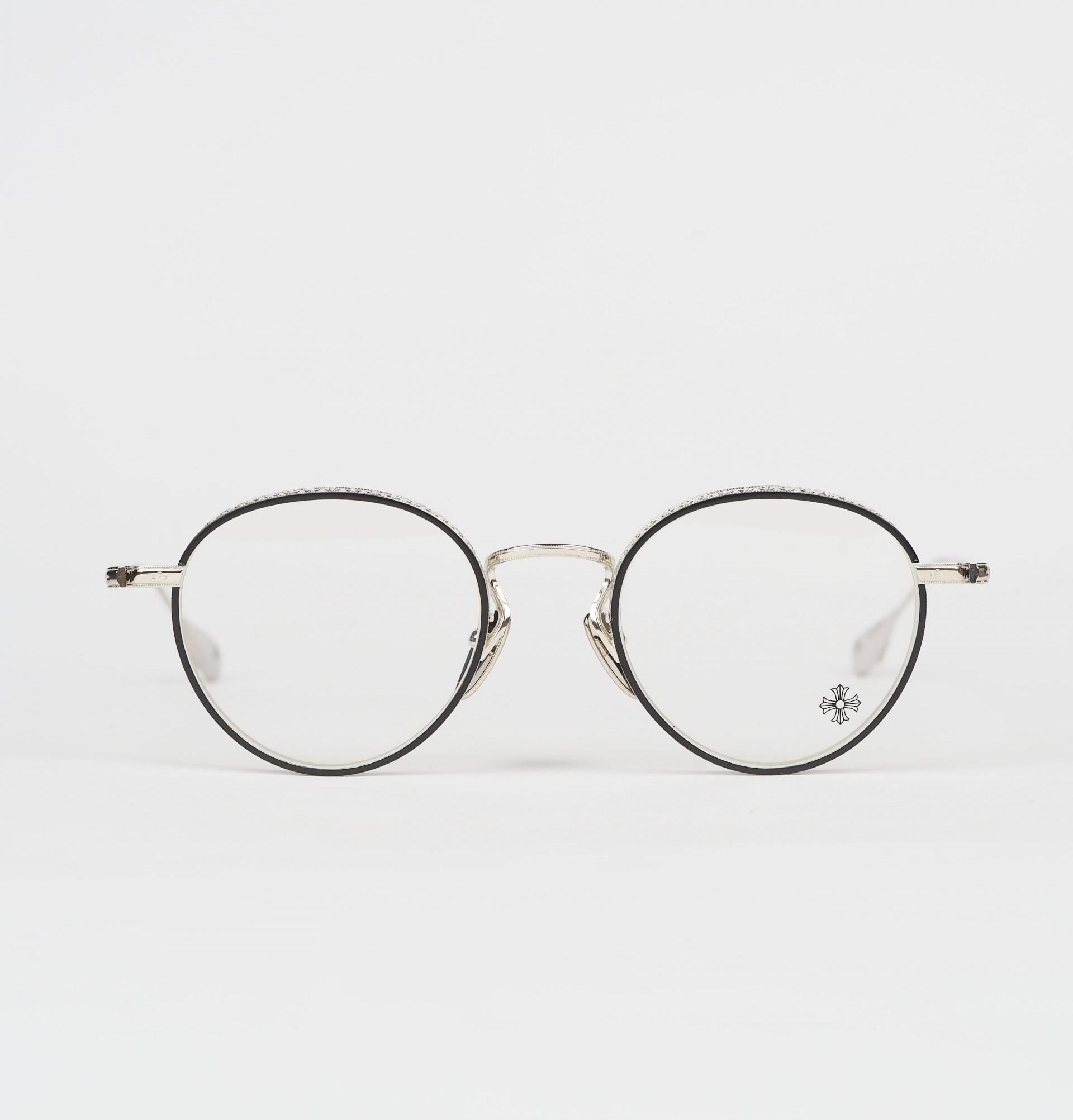 The Chrome Hearts Glasses THICK – MATTE BLACK/SHINY SILVER offer a sleek, modern look. Matte black frames contrast elegantly with shiny silver details for a stylish finish.