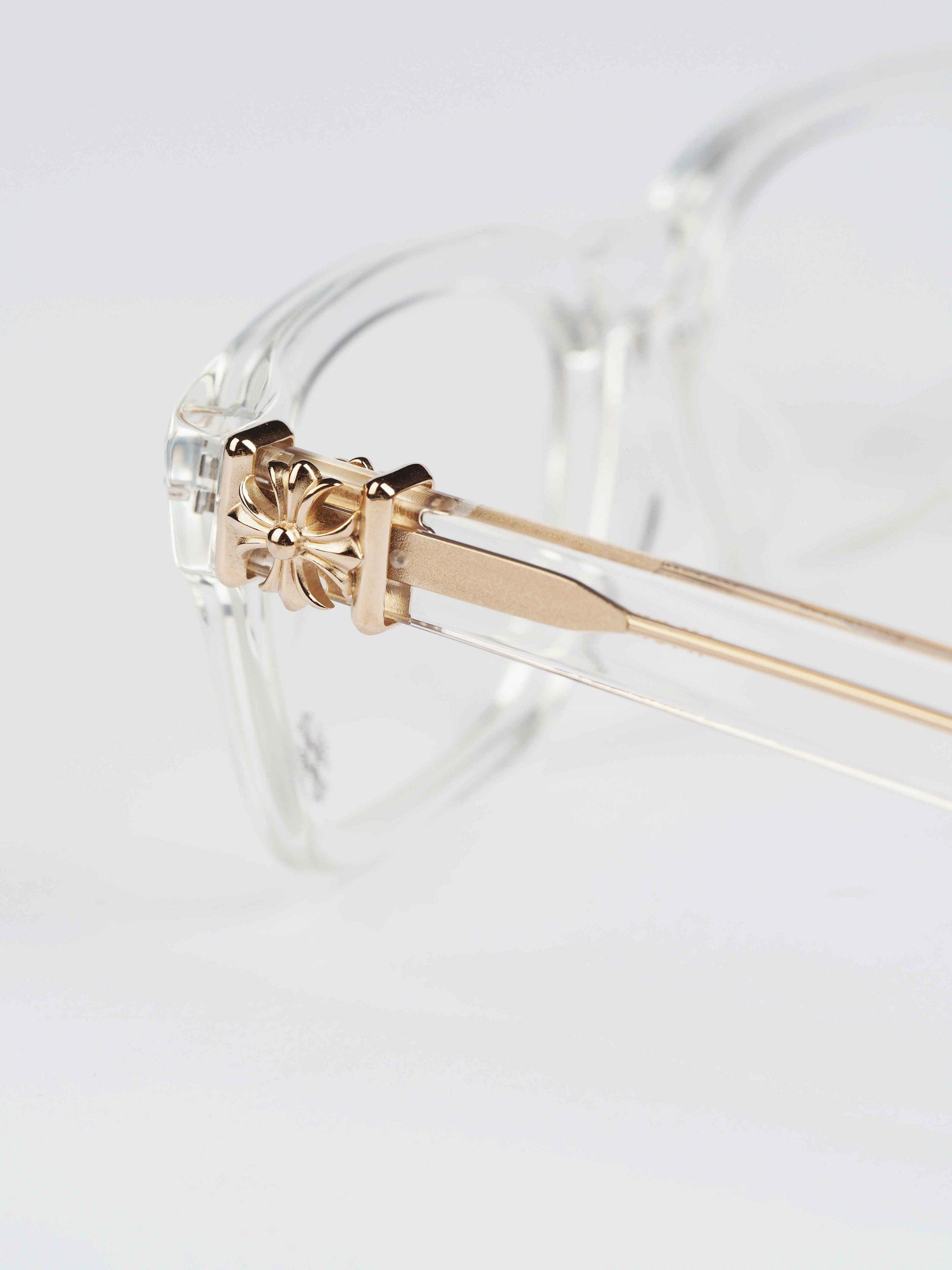 Adorn yourself with Chrome Hearts' VAGILANTE glasses, boasting a fusion of striking CRYSTAL frames and opulent GOLD PLATED accents for an unparalleled sense of luxury and refinement.