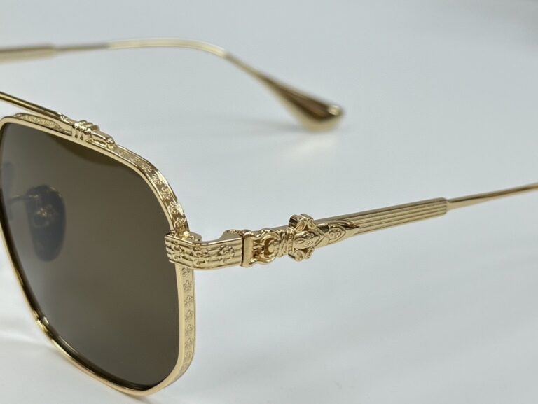 The Chrome Hearts Sunglasses showcase a CH8034 Gold/Plated frame, exuding luxury and sophistication. With its gold-plated finish, these sunglasses offer a glamorous accessory for any occasion.