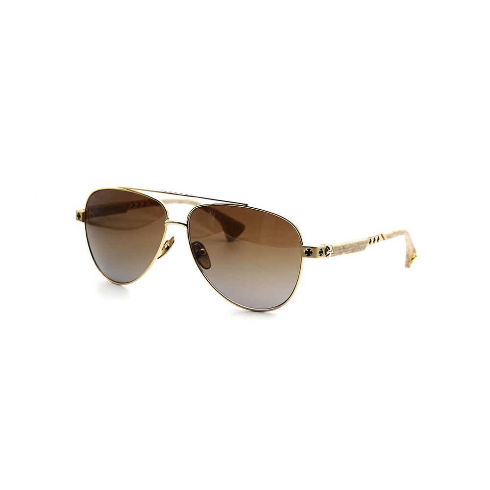 The Chrome Hearts Sunglasses frame Gold Plated 5 radiates luxury and elegance. Crafted with meticulous attention to detail, its gleaming gold-plated design exudes opulence, making it a standout accessory for the fashion-forward.
