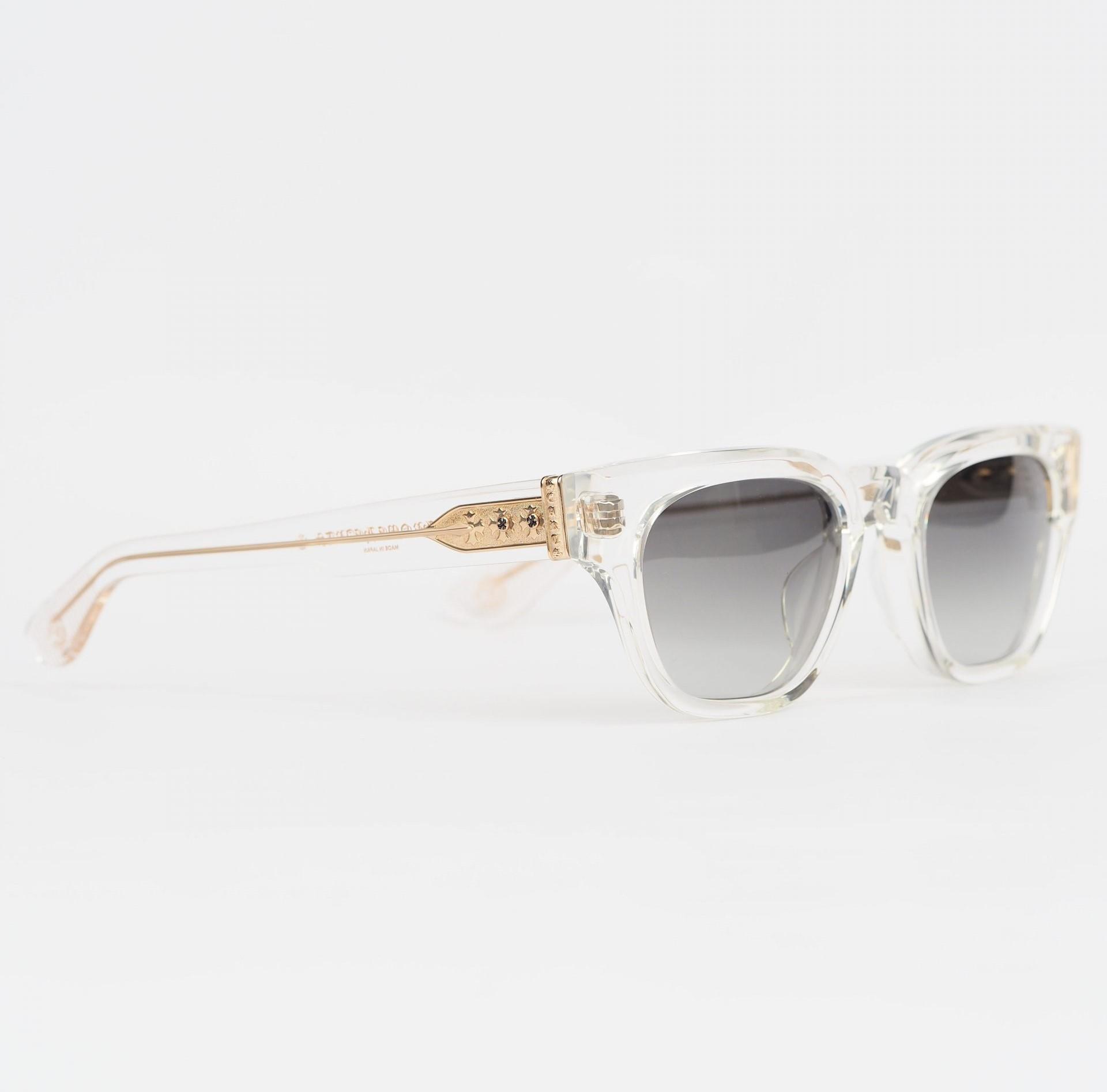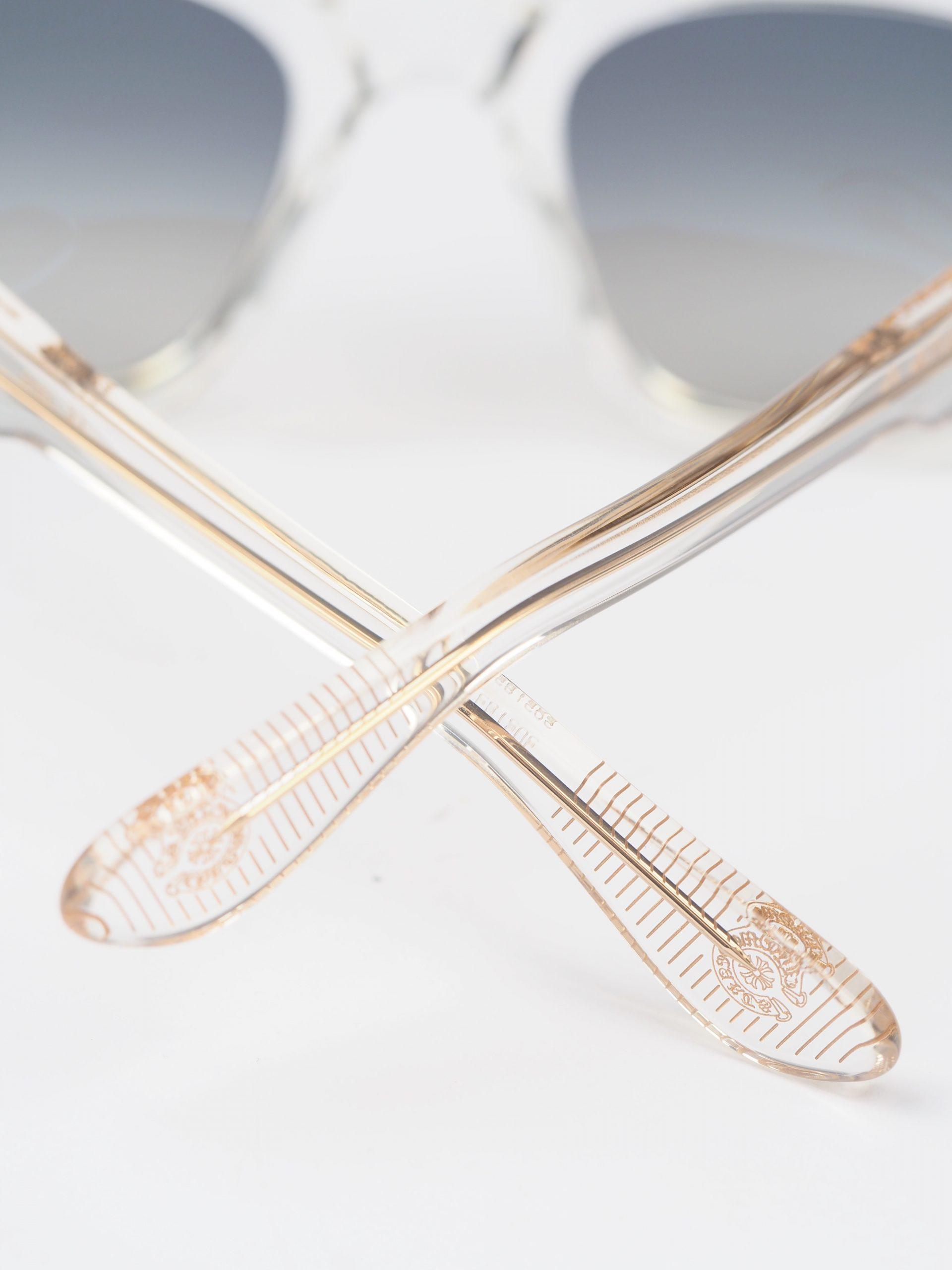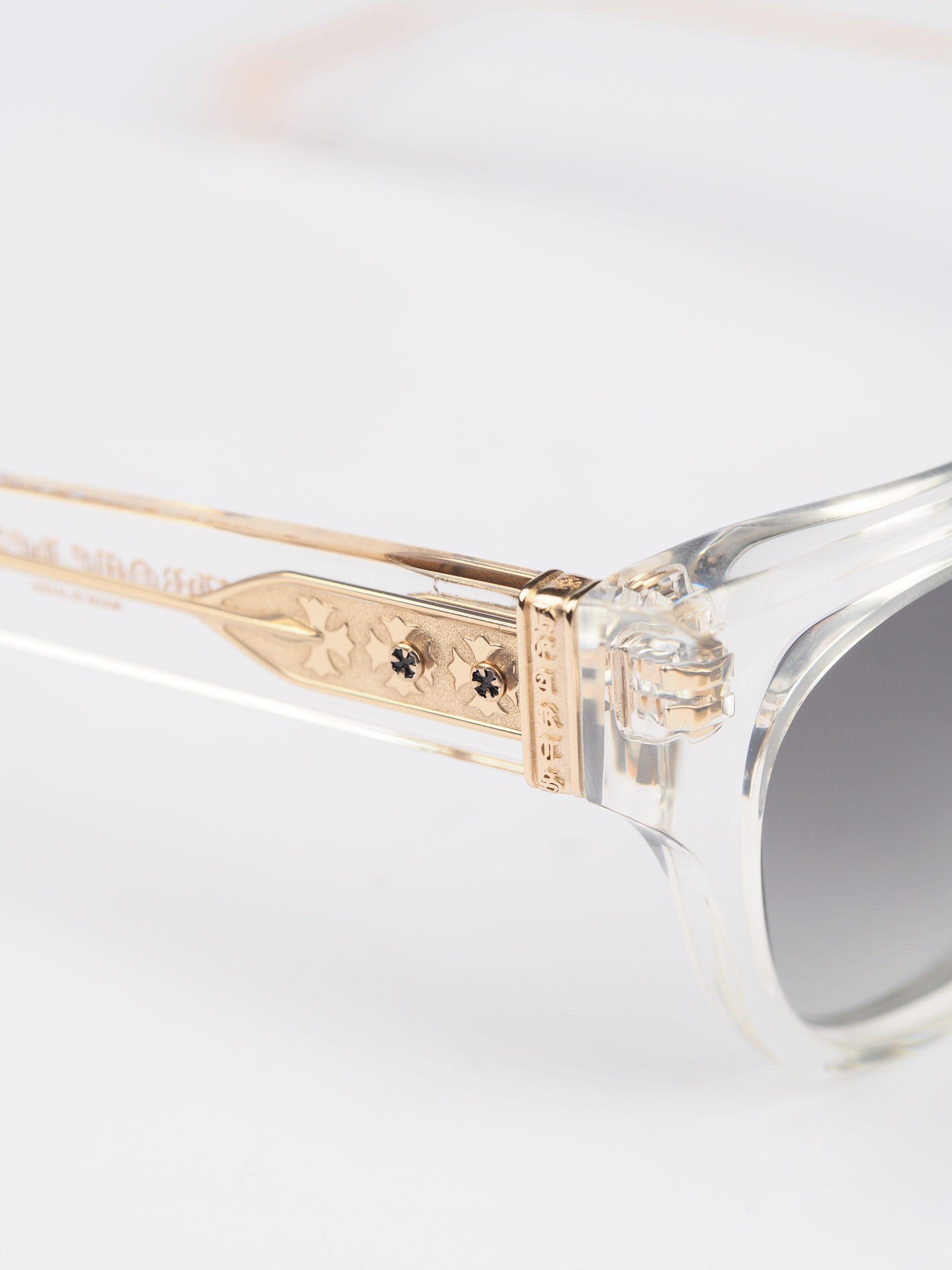 Chrome Hearts Sunglasses MIDIXATHRILL II – CRYSTAL/GOLD PLATED offer a luxurious touch. With crystal frames and gold-plated accents, they provide a glamorous accessory for the fashion-forward individual.