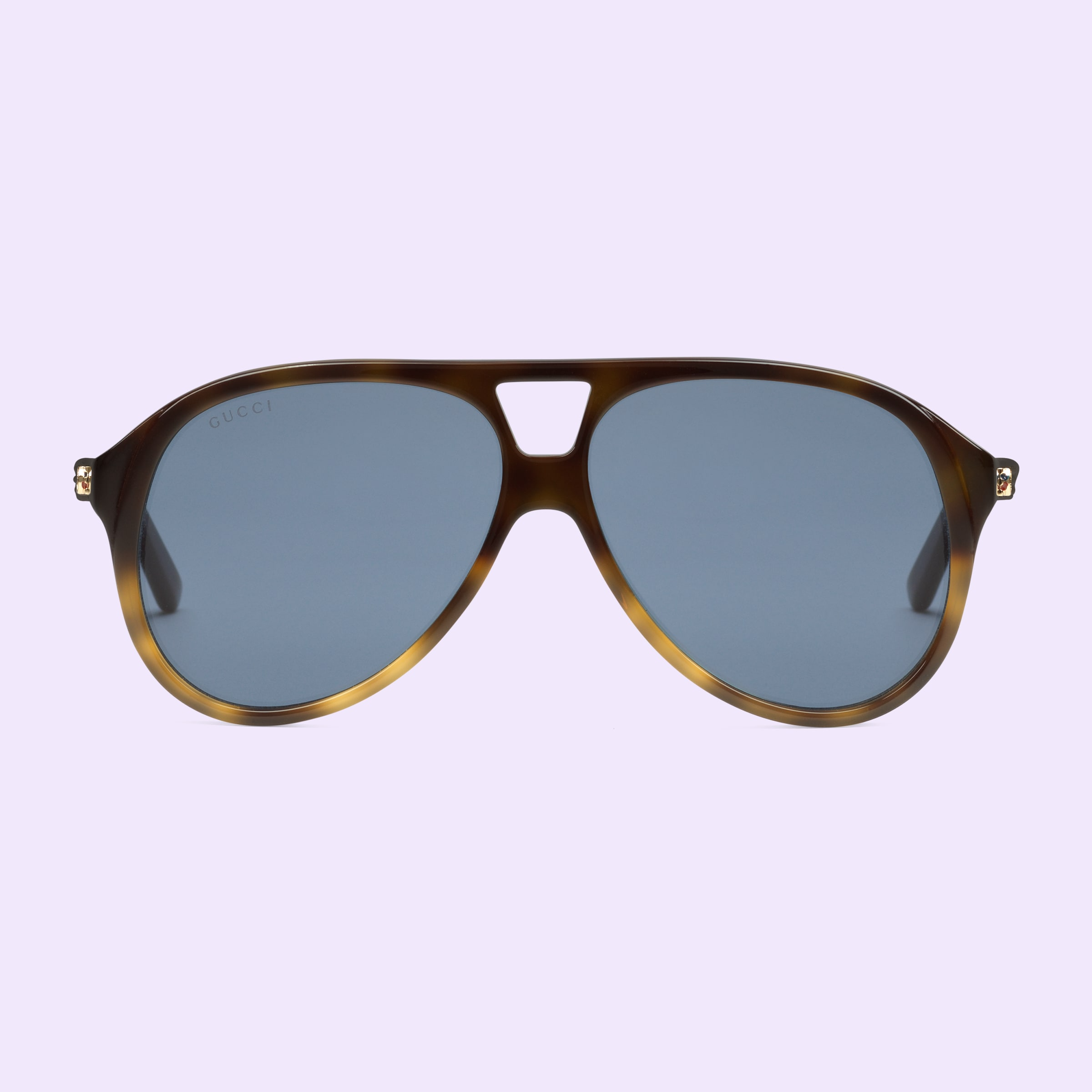 - Shiny tortoiseshell temples with enamel and Interlocking G