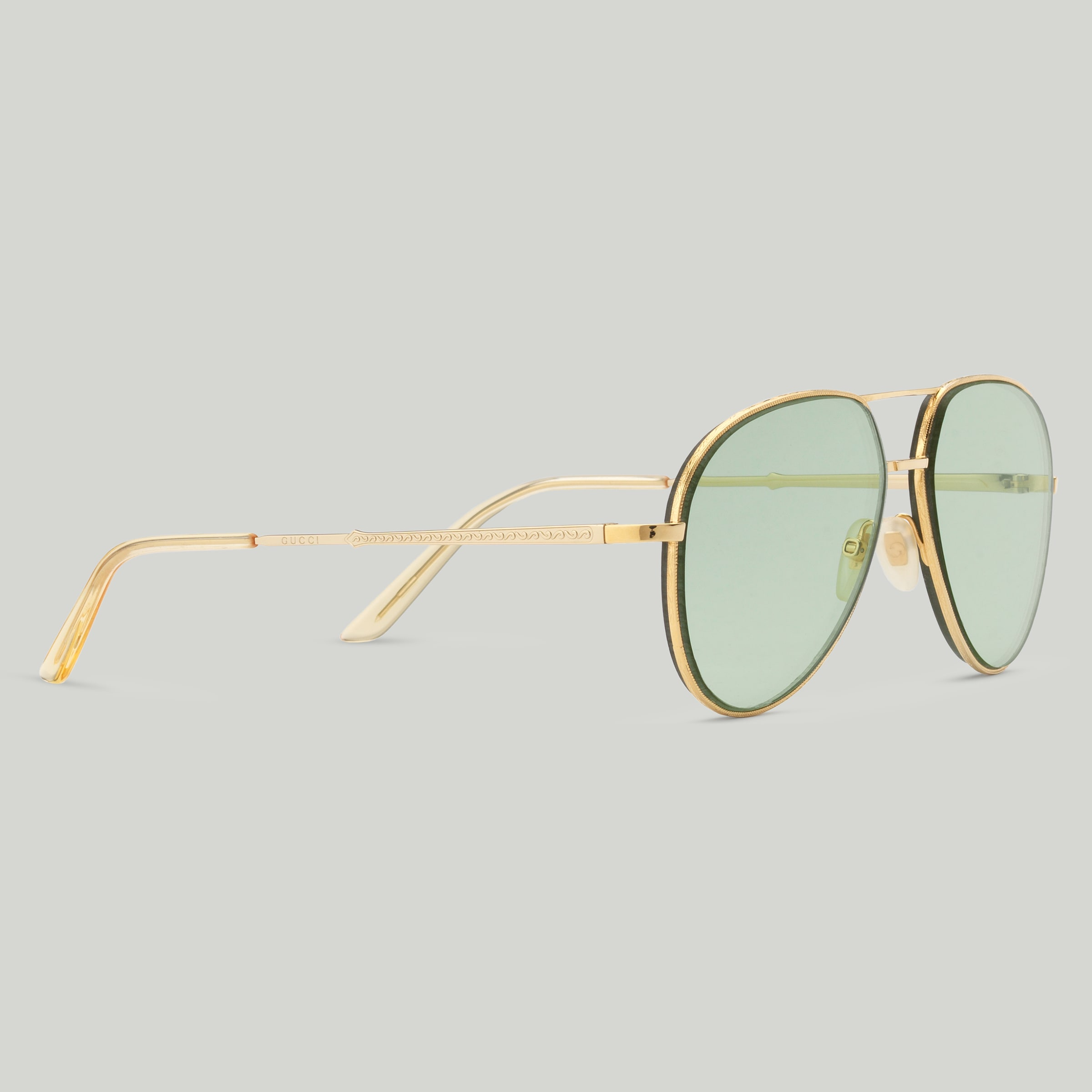 Gucci Aviator Metal Sunglasses GG0356S embody a perfect blend of modernity and elegance. The aviator design, enhanced by metal frames, exudes sophistication. The Gucci logo on the temples showcases its luxury appeal. With 100% UV protection, these sunglasses are as practical as they are stylish. A timeless accessory for those seeking a touch of fashion-forward refinement.