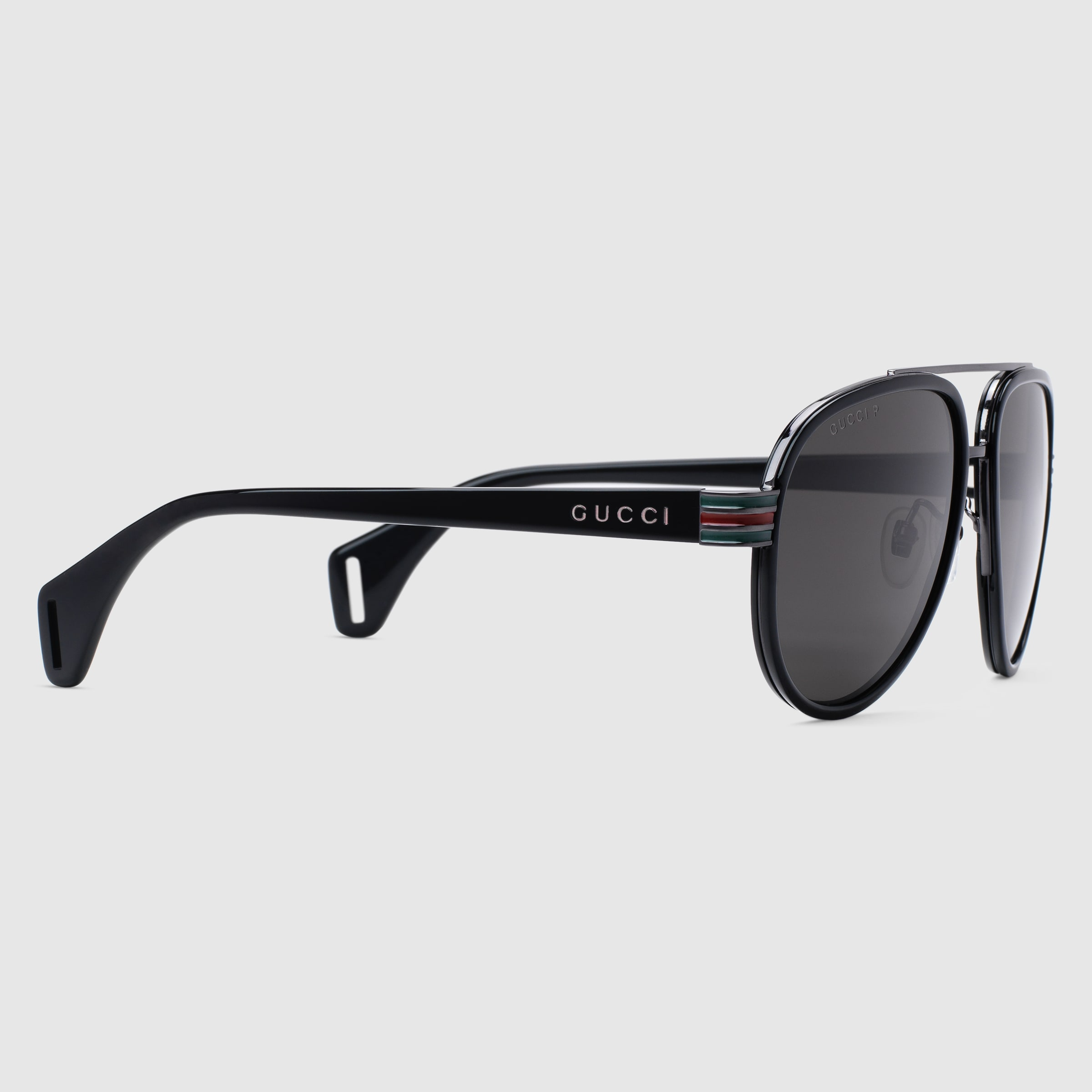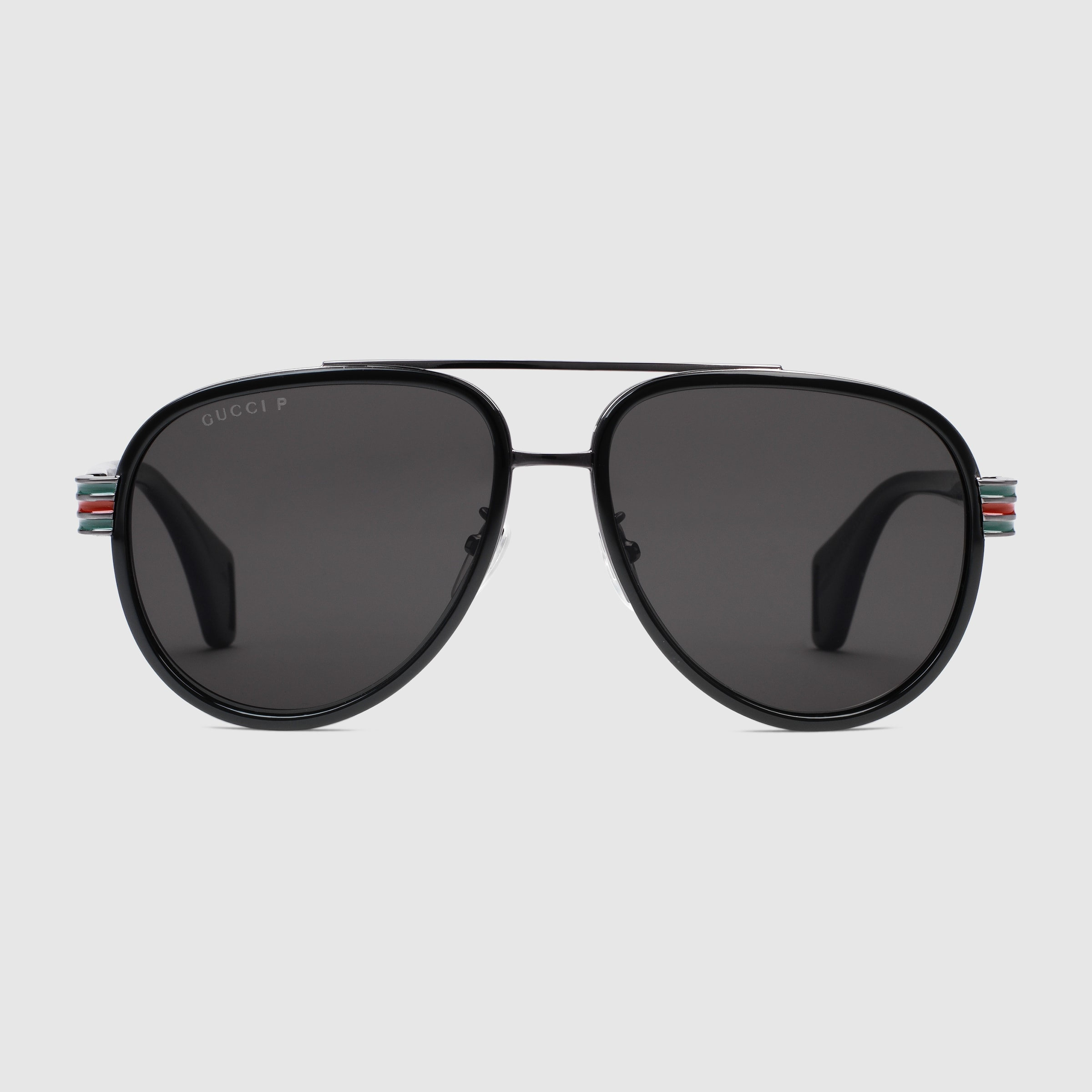 The Gucci AVIATOR SUNGLASSES GG0447S epitomize classic aviator style with a modern twist. Featuring a sleek metal frame and teardrop-shaped lenses, these sunglasses exude a timeless appeal. The double bridge design adds a touch of sophistication, while the iconic Gucci logo on the temples showcases luxury. With 100% UV protection, these sunglasses are both stylish and functional, making them a must-have accessory for any fashion-conscious individual seeking to make a statement. Embrace the iconic aviator look with Gucci's impeccable craftsmanship.