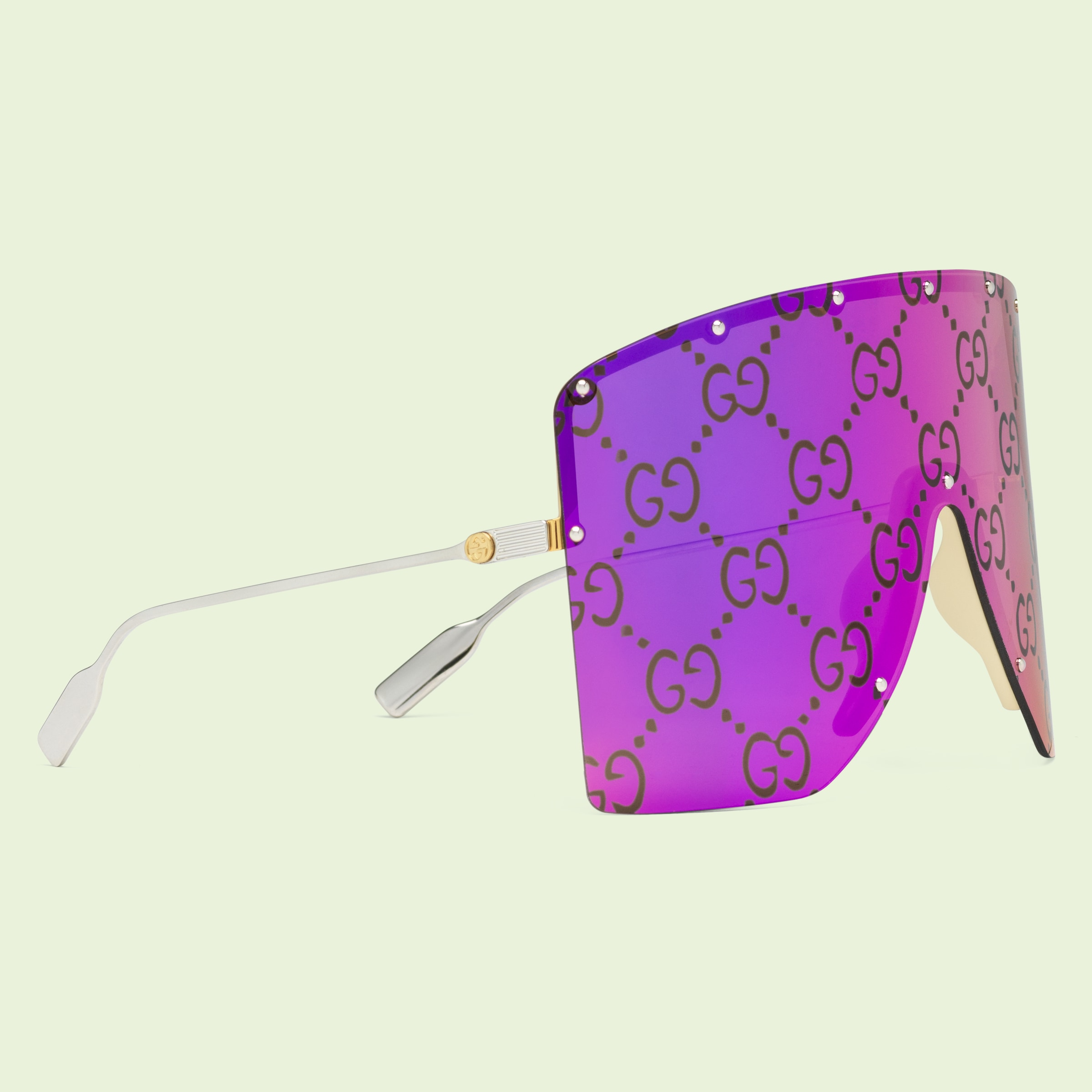 - Shiny silver-toned metal temples with Interlocking G detail