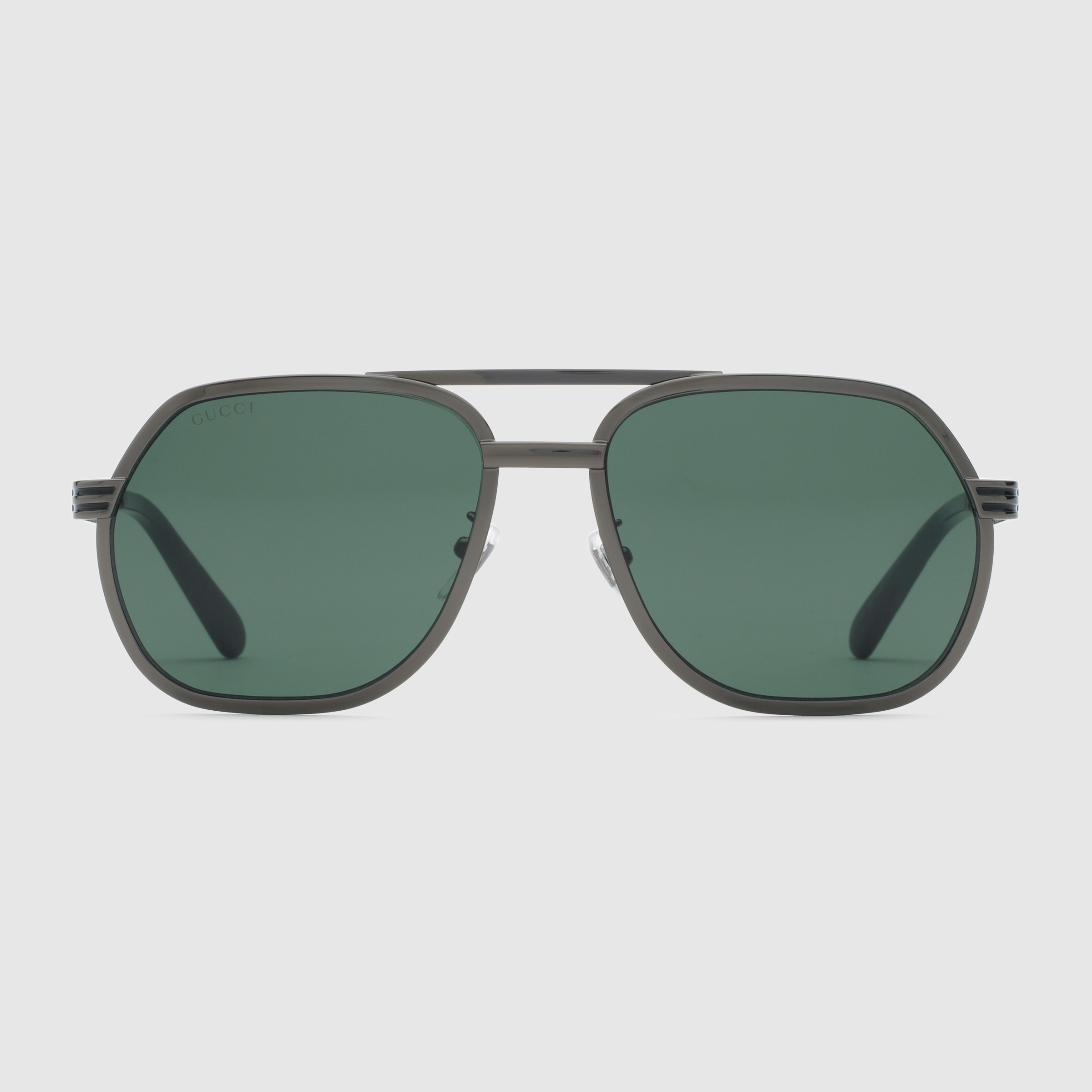 - Dark ruthenium metal temples with Gucci lettering and Web detail