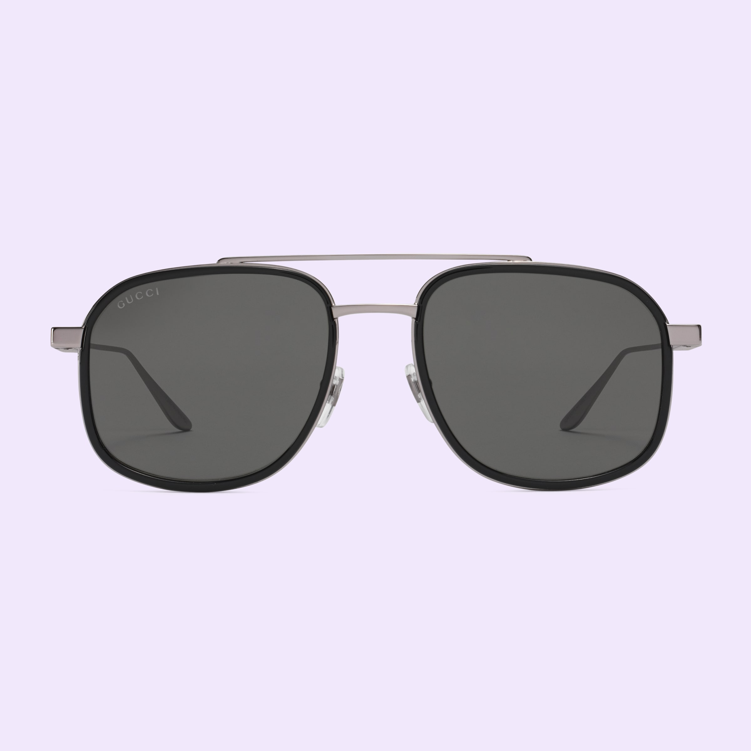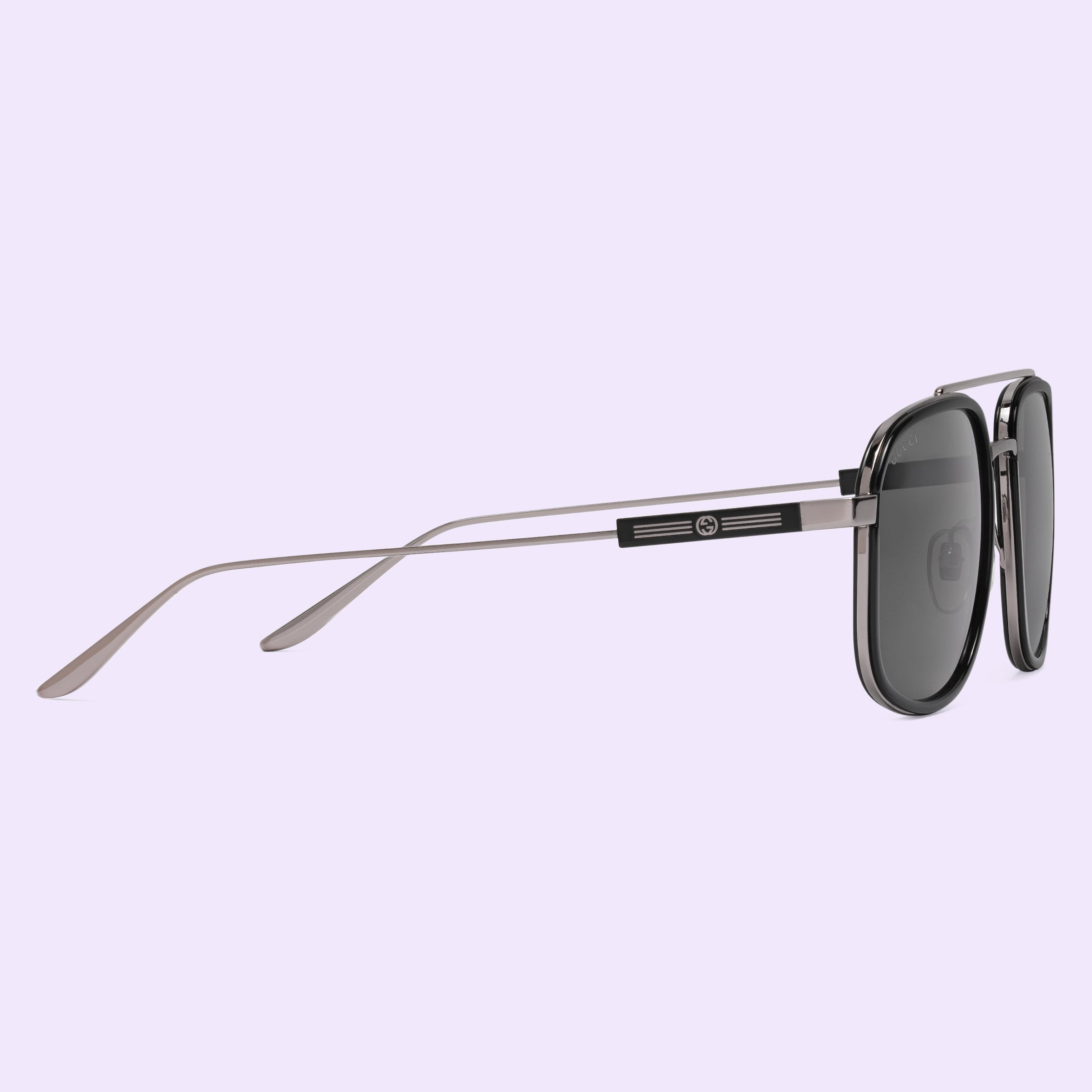 - Shiny dark grey metal temples with Interlocking G and Web