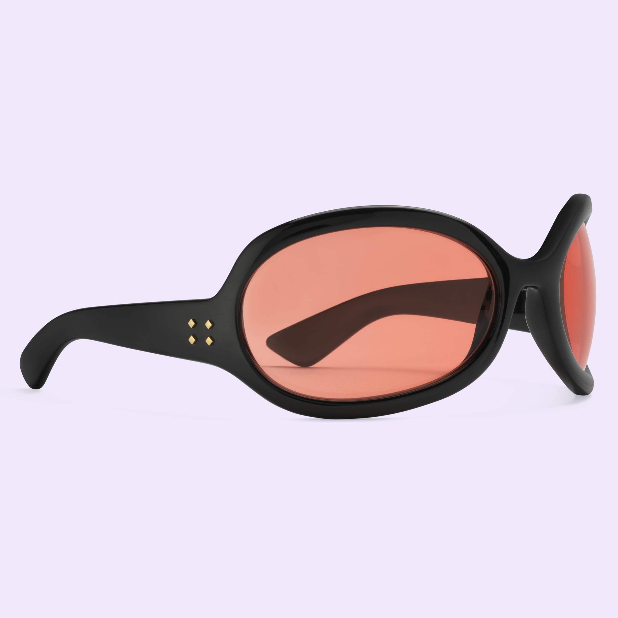 - Shiny black acetate temples with metal rivets