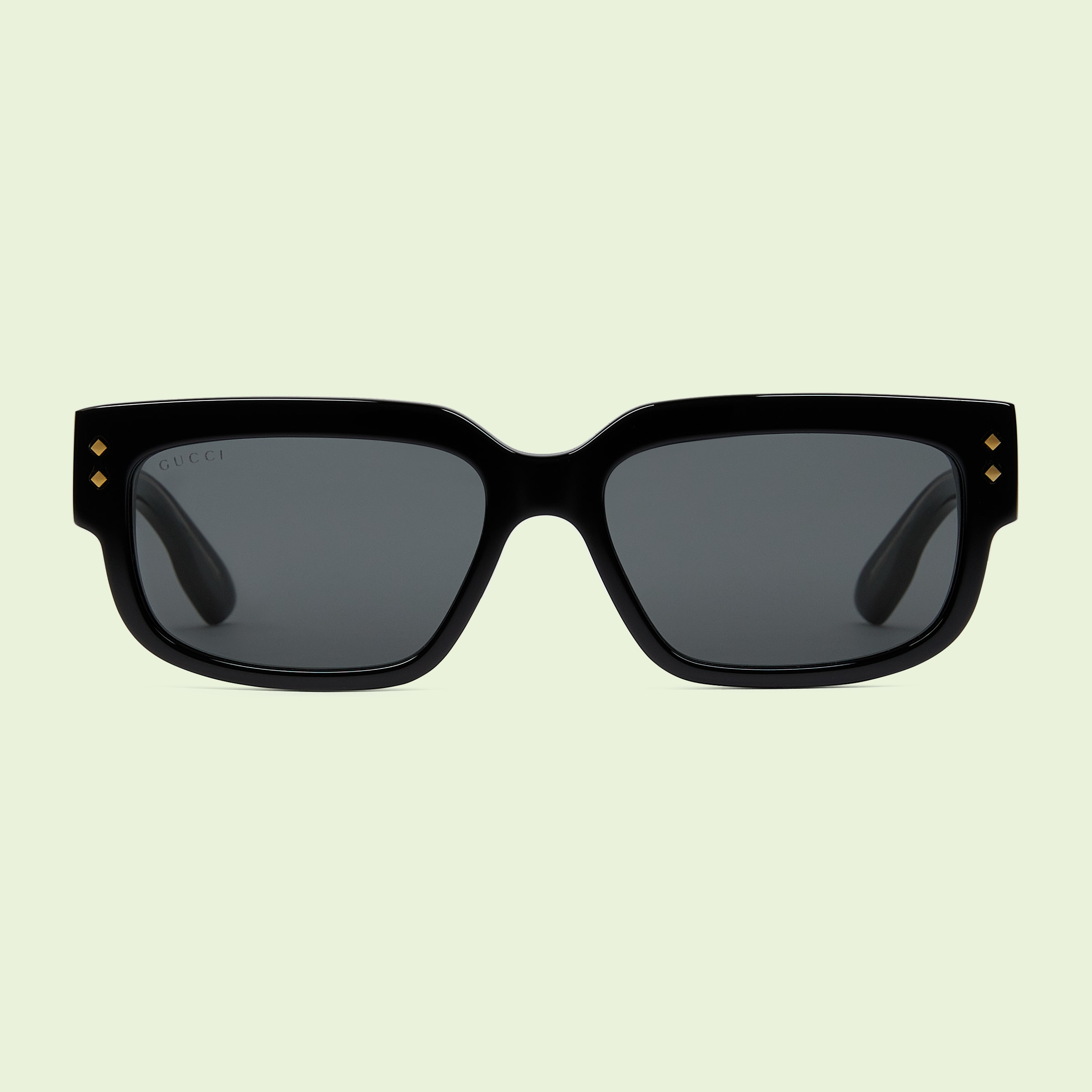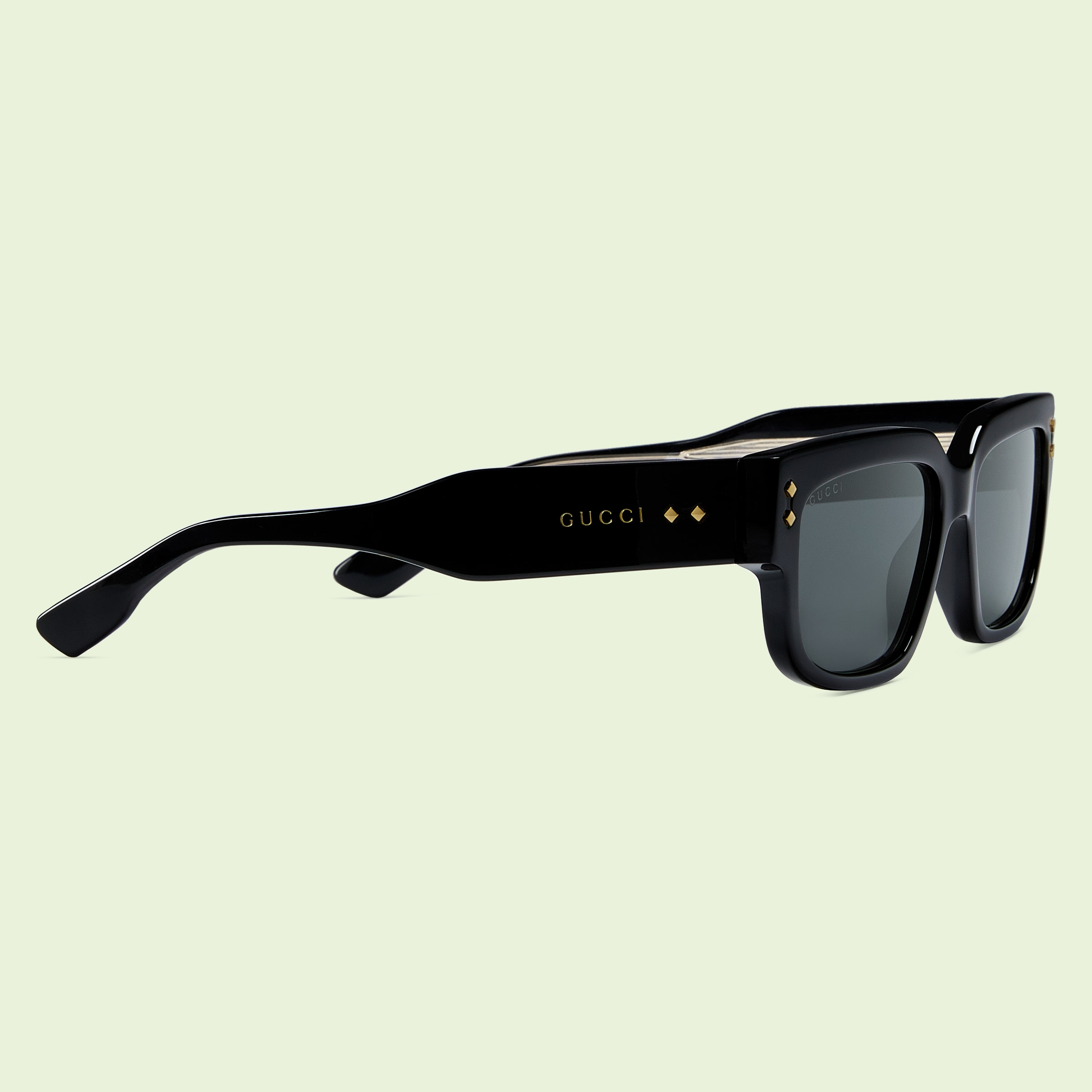 • Shiny double layered black and crystal-colored acetate frames with rivets and 'Gucci'
