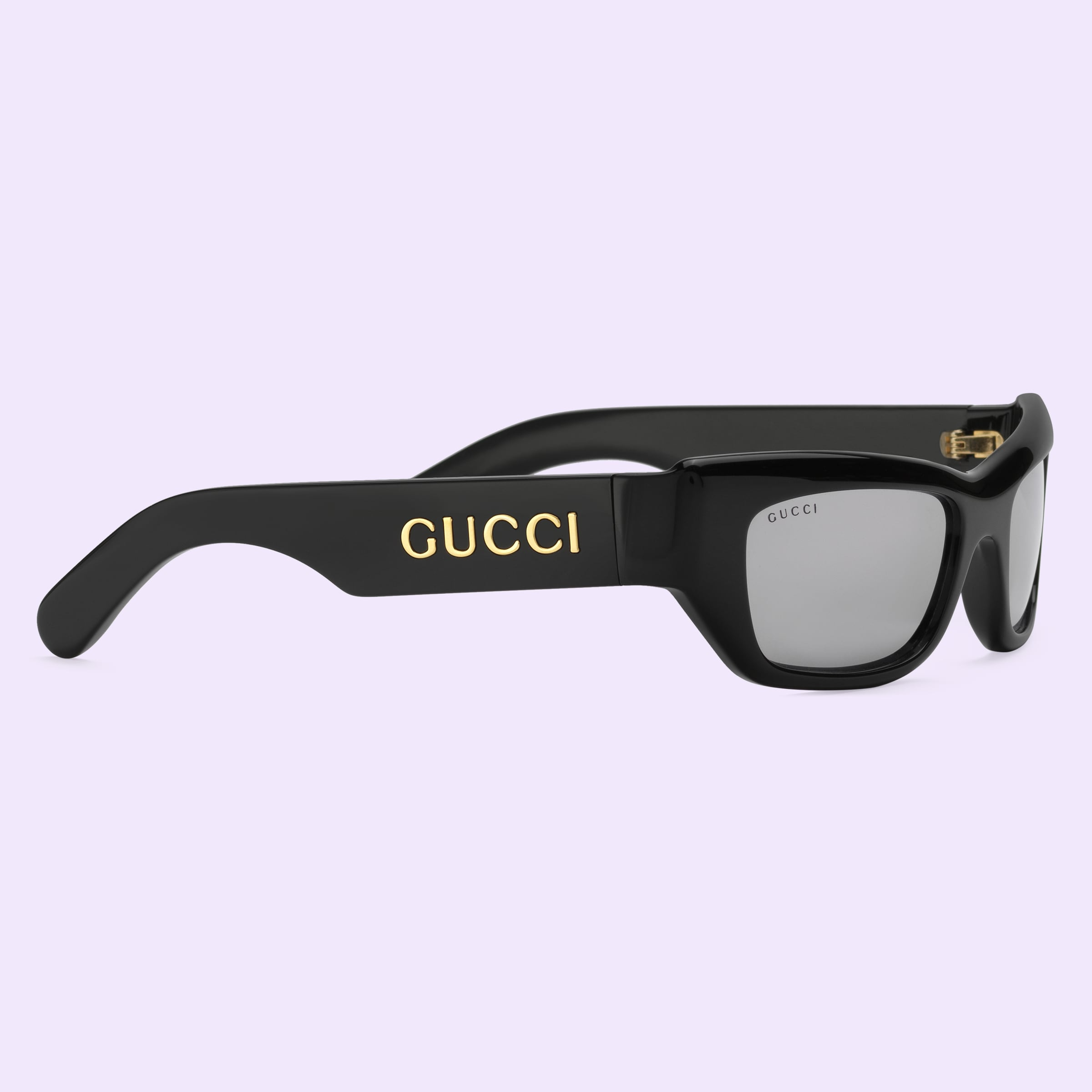 - Shiny black acetate temples with Gucci logo detail