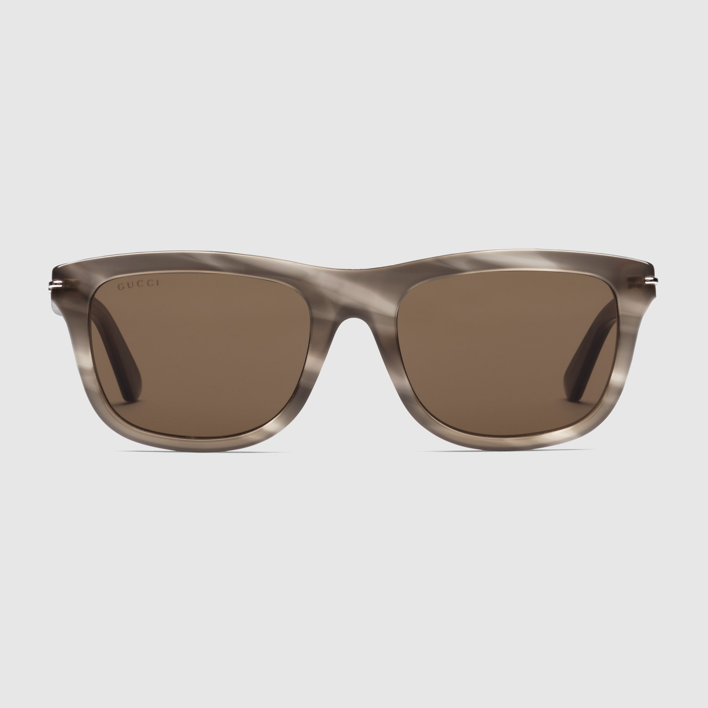 - Shiny striped grey and taupe acetate temples with Gucci lettering