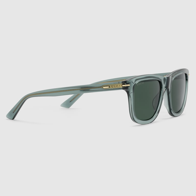 - Shiny transparent blue acetate temples with Gucci lettering