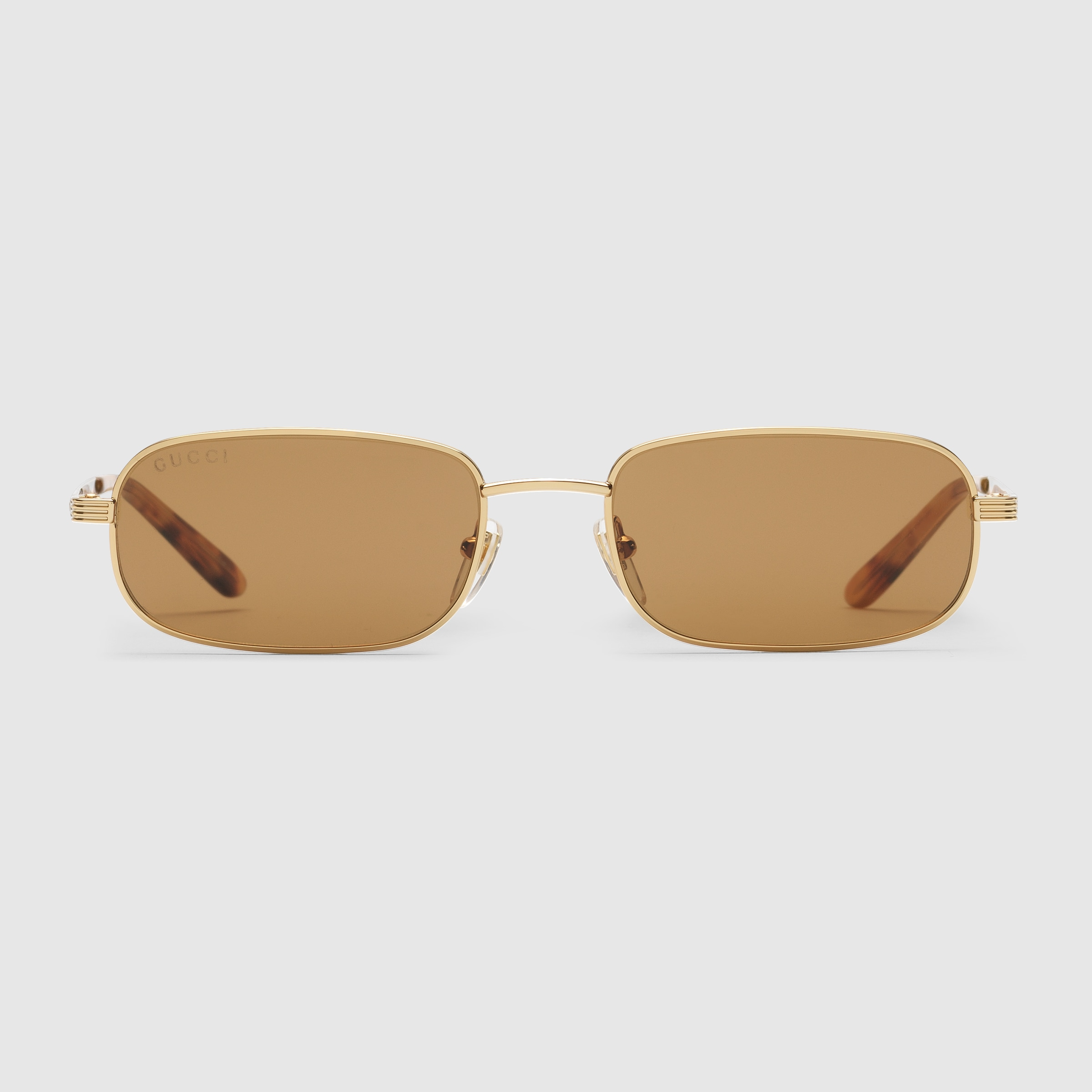 - Shiny gold-toned metal temples with ridge detail and Gucci lettering, complete with tortoiseshell acetate tips