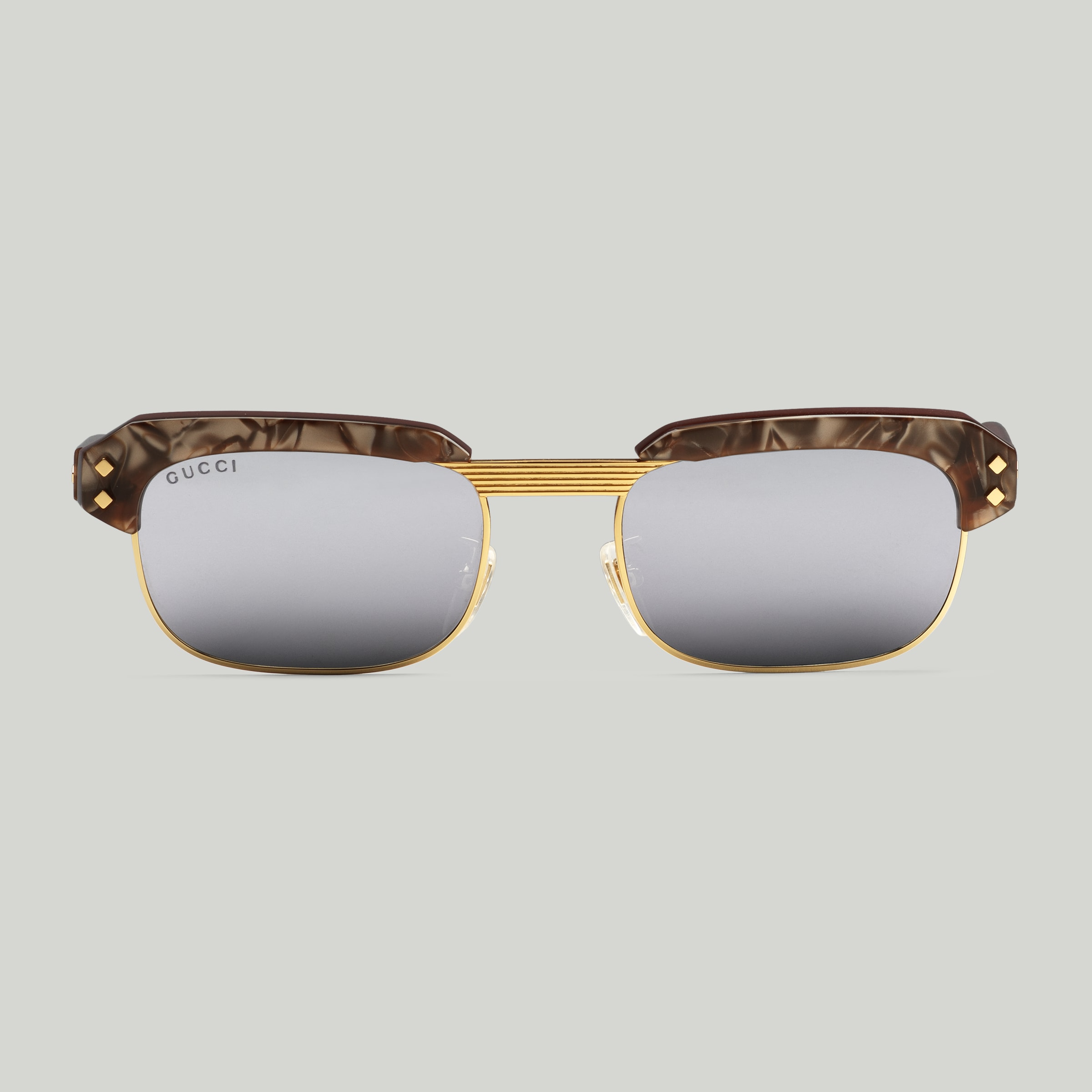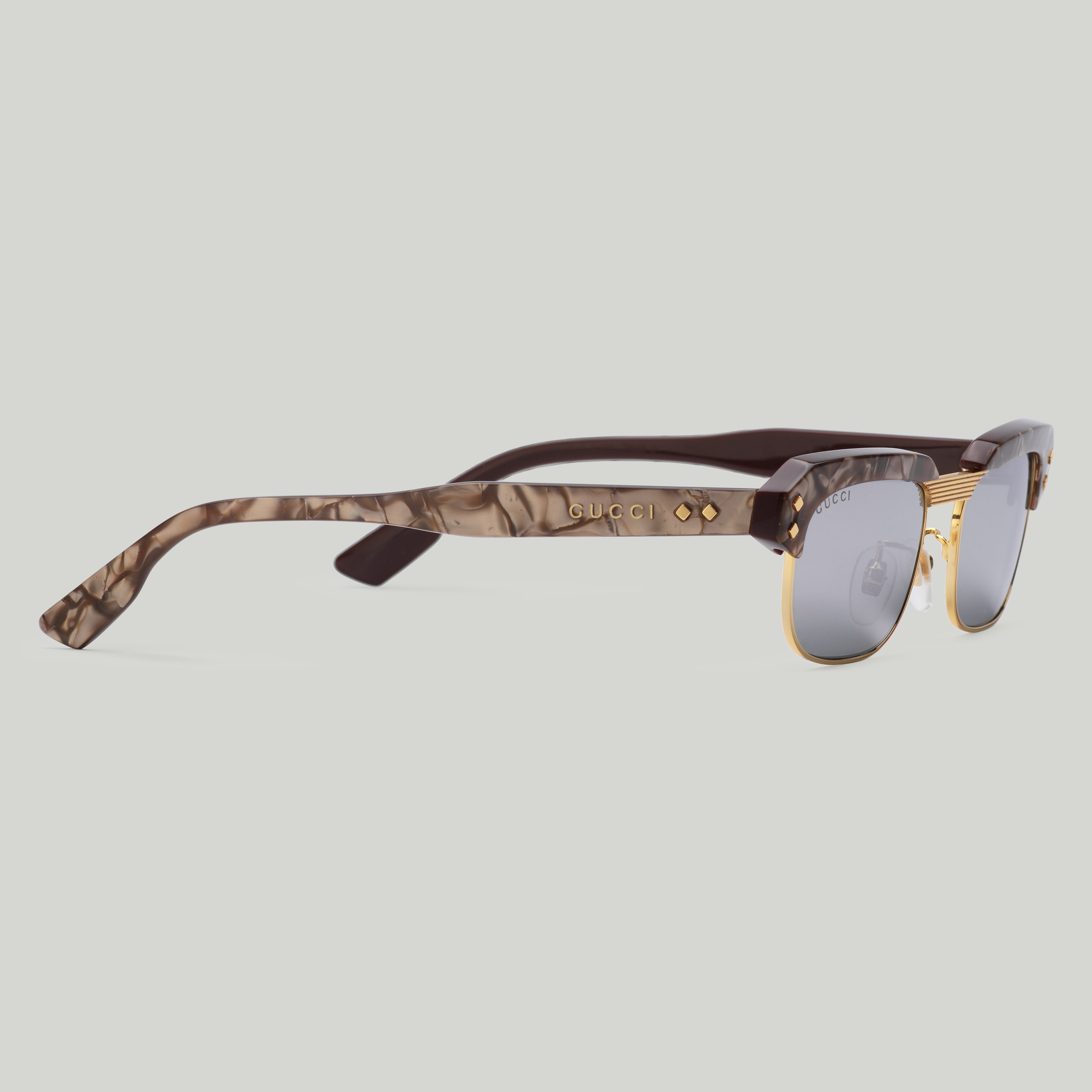• Brown acetate temples with metal rivets and Gucci logo detail