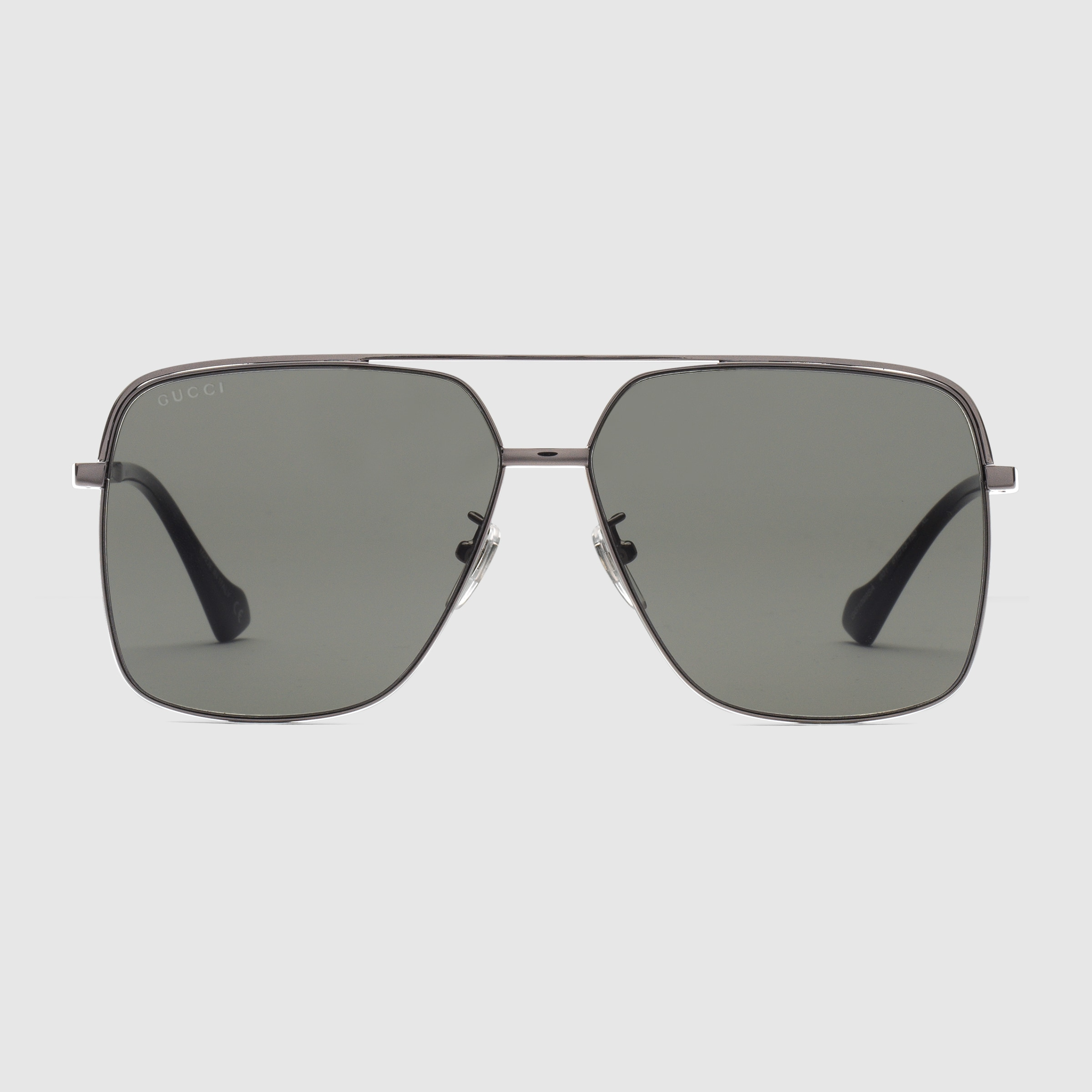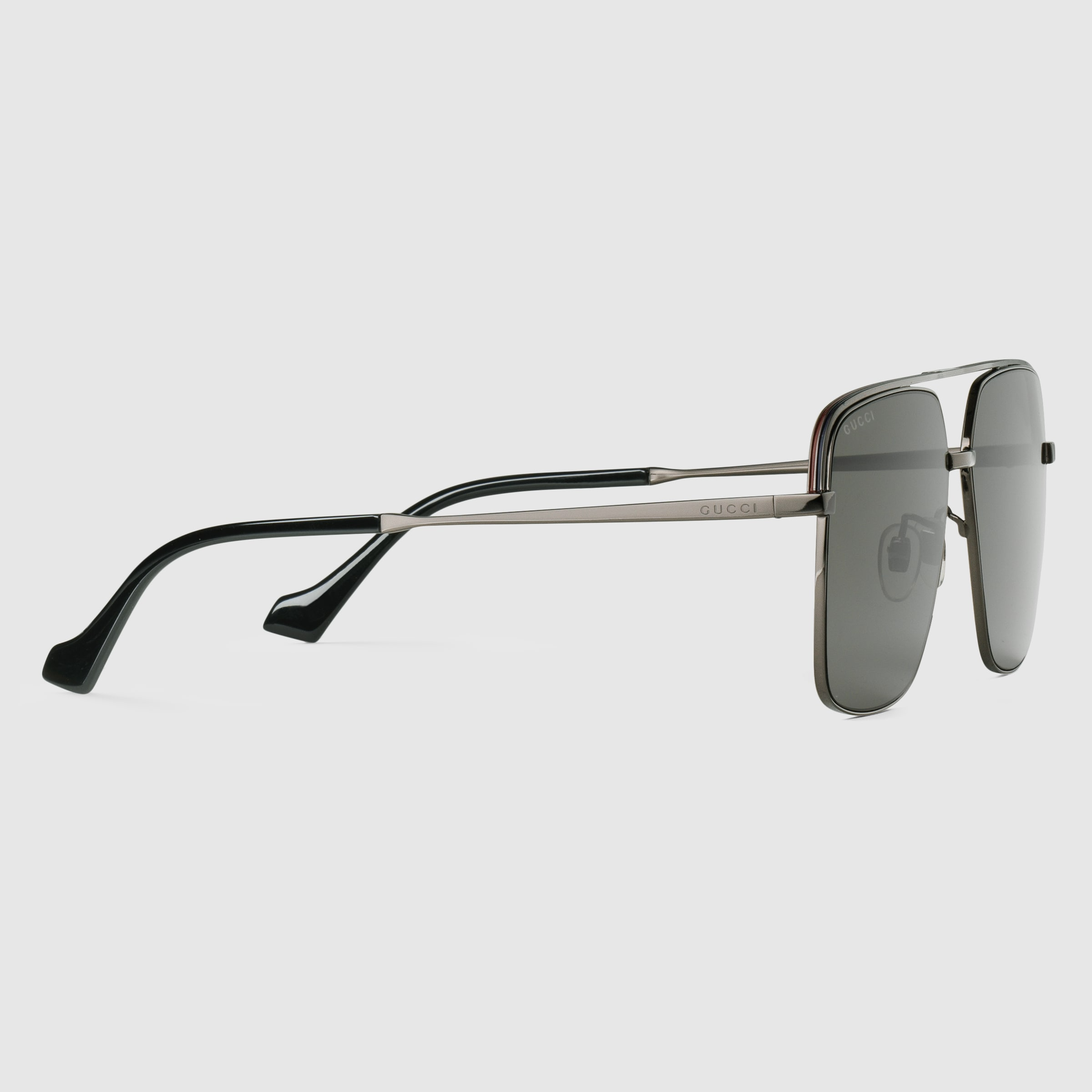 - Ruthenium grey metal temples with acetate tips and Gucci lettering engraved on the side