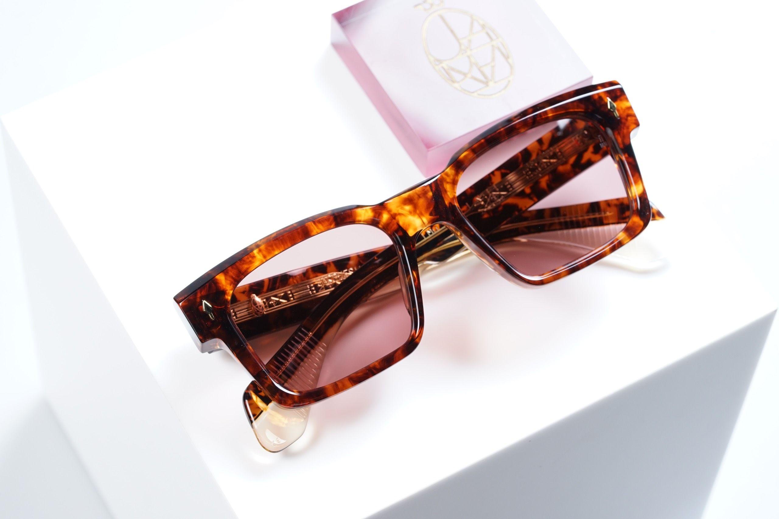 The Jacques Marie Mage Kaine Argyle Sunglasses redefine contemporary style with their distinctive argyle pattern frames. These sunglasses offer a unique blend of classic and modern aesthetics, making a bold fashion statement. Handcrafted with precision, they combine individuality and top-notch craftsmanship, making them an exceptional choice for those who seek eyewear that stands out with a touch of retro-inspired flair.