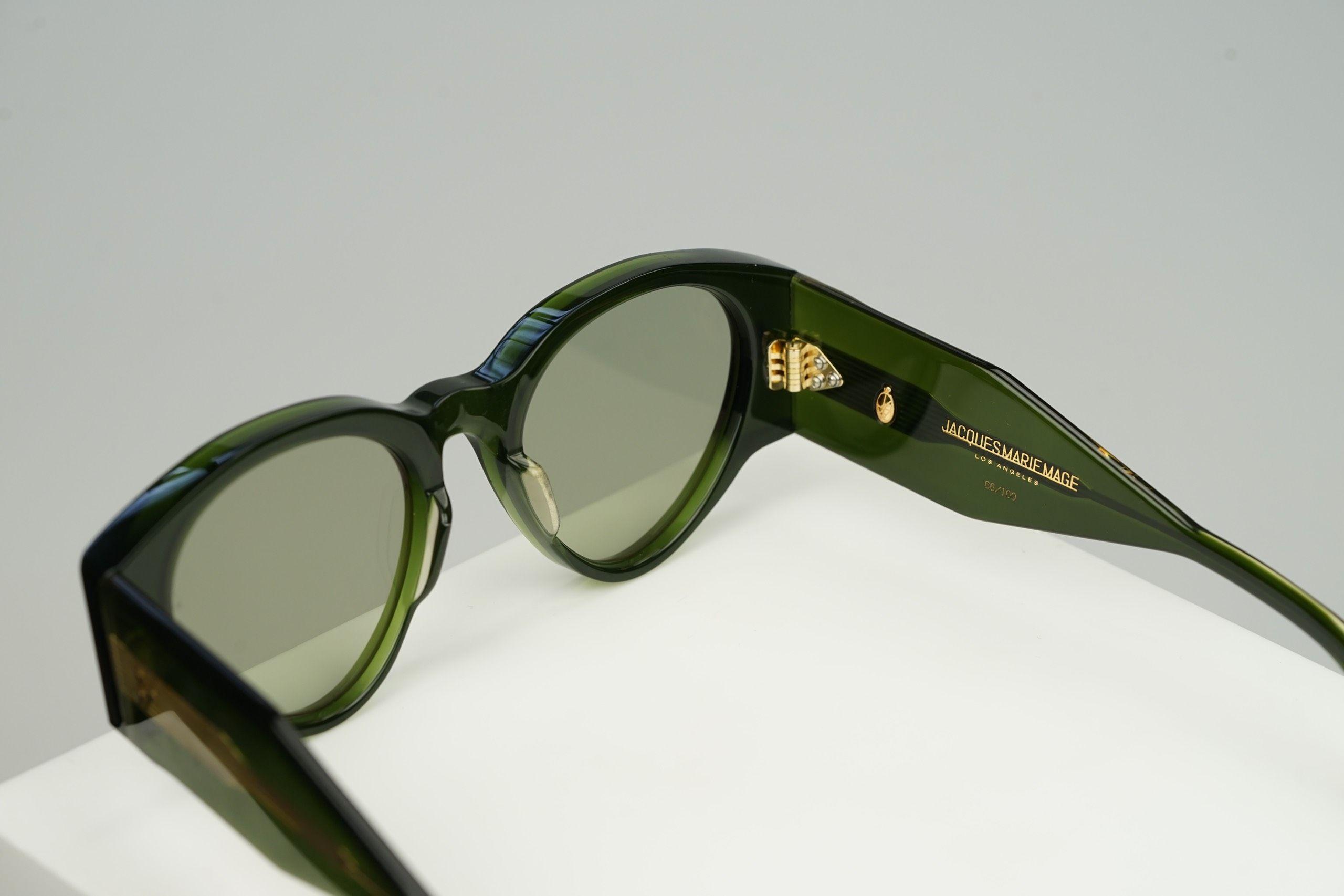 Jacques Marie Mage Lana Rover Sunglasses exude timeless charm with their distinct rover-colored frames. They blend classic aesthetics and contemporary style seamlessly, making a bold and sophisticated fashion statement. Meticulously handcrafted, these sunglasses offer a unique combination of individuality and top-tier craftsmanship, perfect for those who appreciate eyewear that effortlessly combines retro-inspired flair with modern elegance.