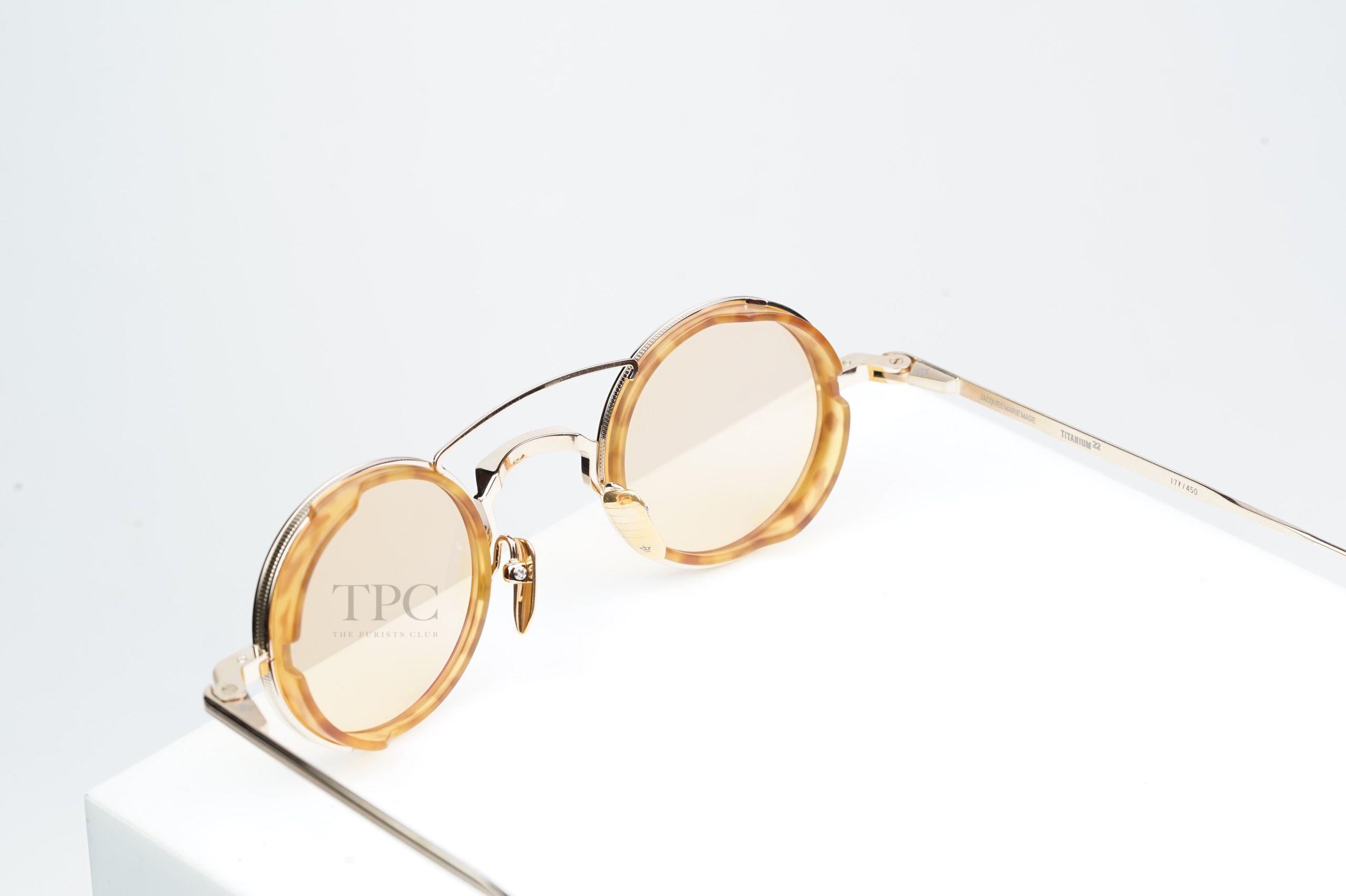 Introducing the Jacques Marie Mage Sunglasses - Ringo 2 Bichon. These sunglasses are a fusion of vintage charm and modern aesthetics. With their unique Bichon colorway, they exude a sense of sophistication and individuality. Crafted with precision, the Ringo 2 Bichon sunglasses are the perfect accessory for those who appreciate distinctive eyewear.