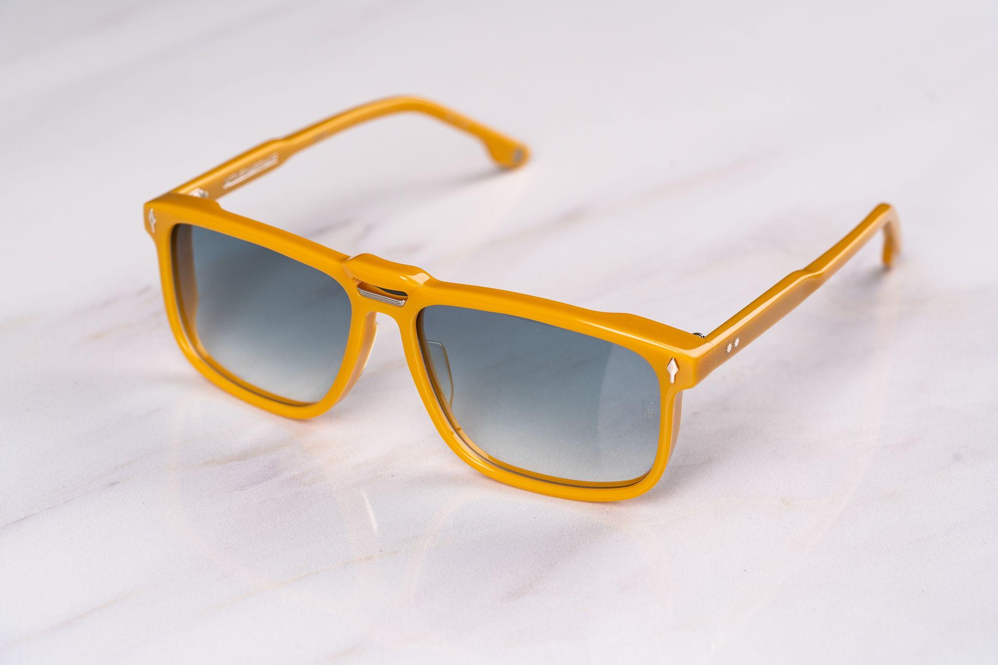 Introducing the Jacques Marie Mage Sunglasses - Savile Mustard. These sunglasses are a burst of vibrant style with their striking Mustard hue. Crafted with precision, they offer a bold and unique fashion statement. Elevate your look with the Savile Mustard sunglasses by Jacques Marie Mage, perfect for those who seek distinctive eyewear.