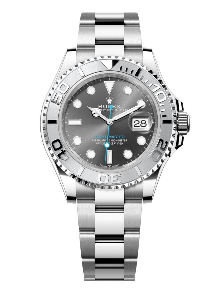 - Machine type: The Rolex in-house Calibre 3235 has a frequency of 28,800 vibrations per hour, 31 jewels and a power reserve of 70 hours. The movement features a blue Parachrom hairspring, a high-performance Chronergy escapement, and Paraflex shock absorbers.