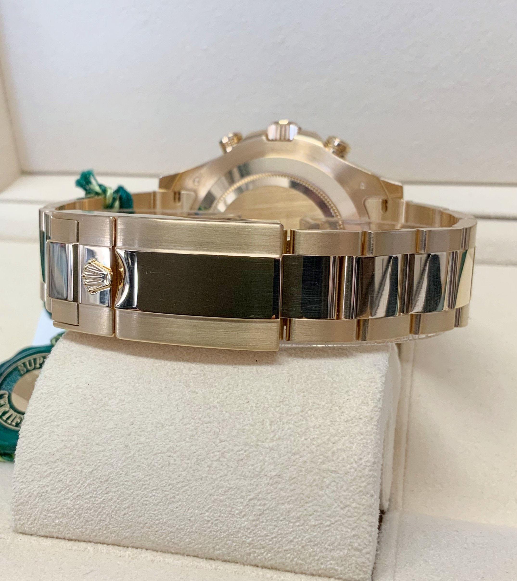 - Machine type: The Rolex Cal.4161 automatic movement oscillates at a frequency of 28,800 vibrations per hour (vph), has 31 jewels, and a power reserve of 72 hours. It features a blue Parachrom hairspring and bidirectional self-winding through the Perpetual rotor.
